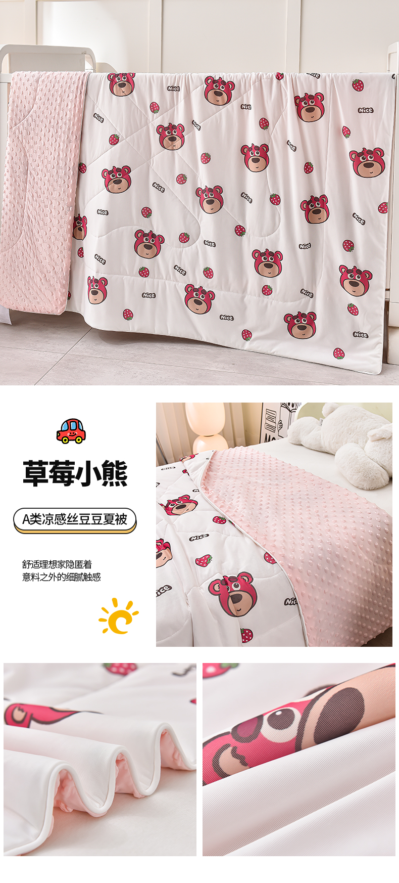 商品名称:嗨生活_2025年爆款 A类冰豆豆凉感丝被 儿童夏被 幼儿园被 直播 团购首选_1477 草莓小熊