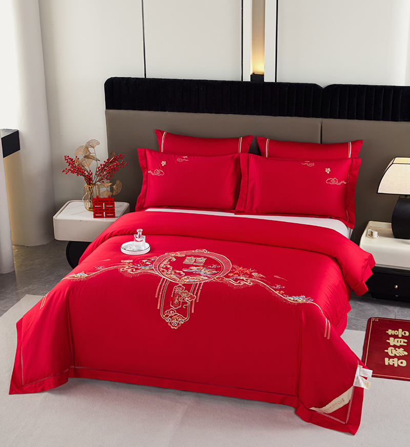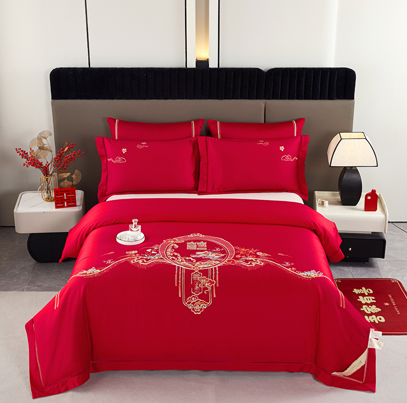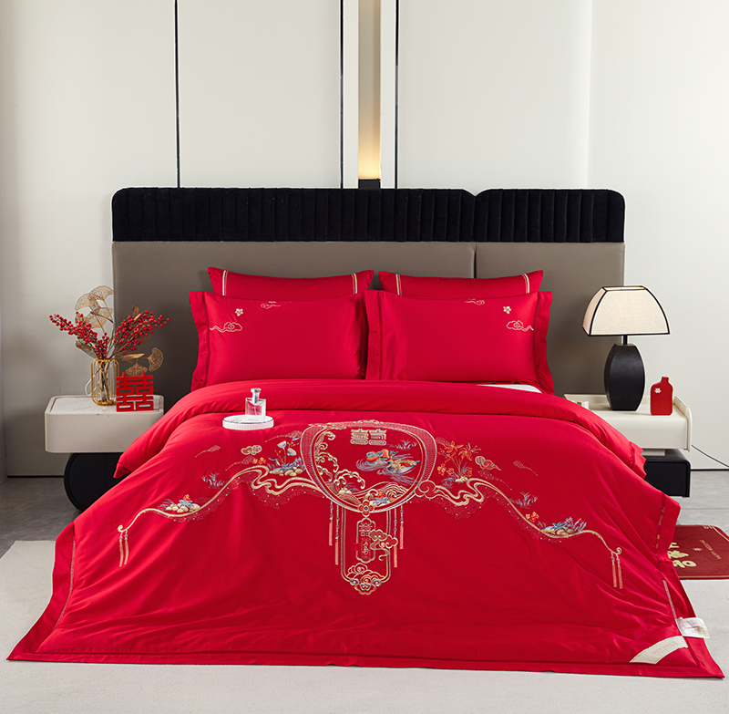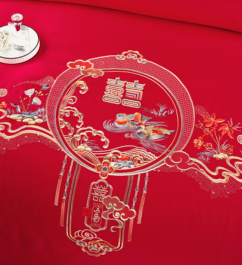 婚庆绣花订花蚕丝被-良辰喜事