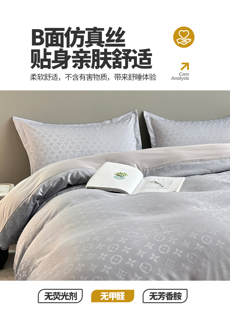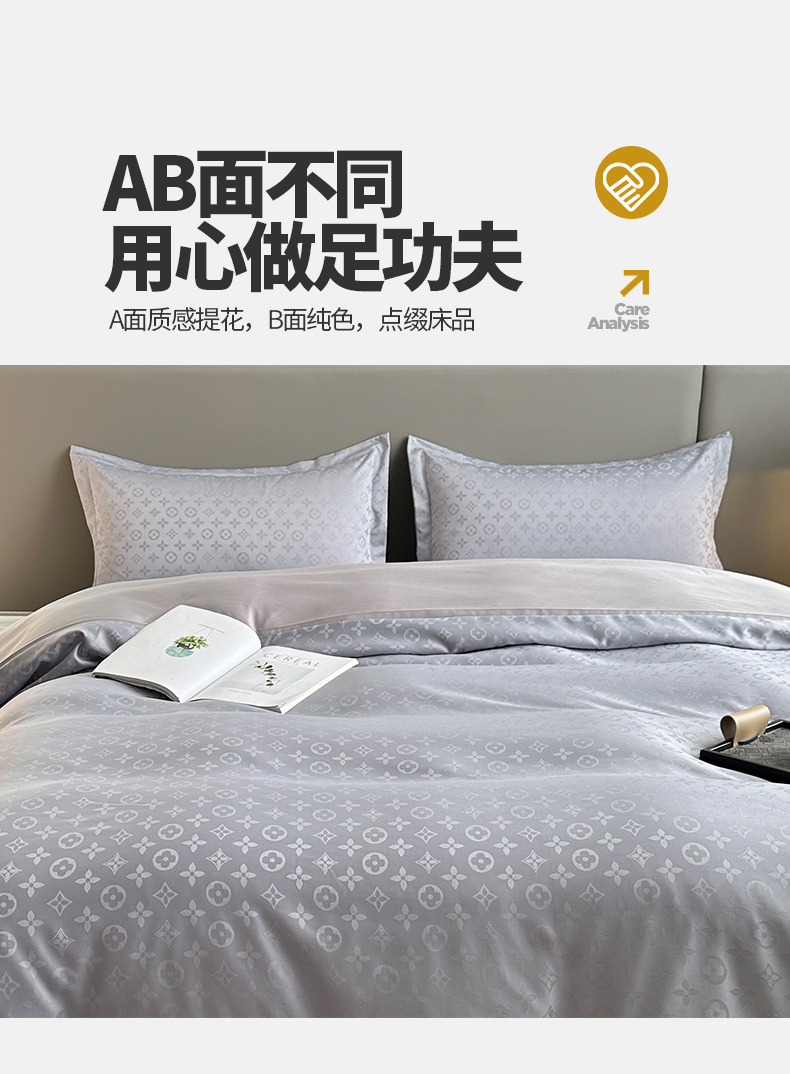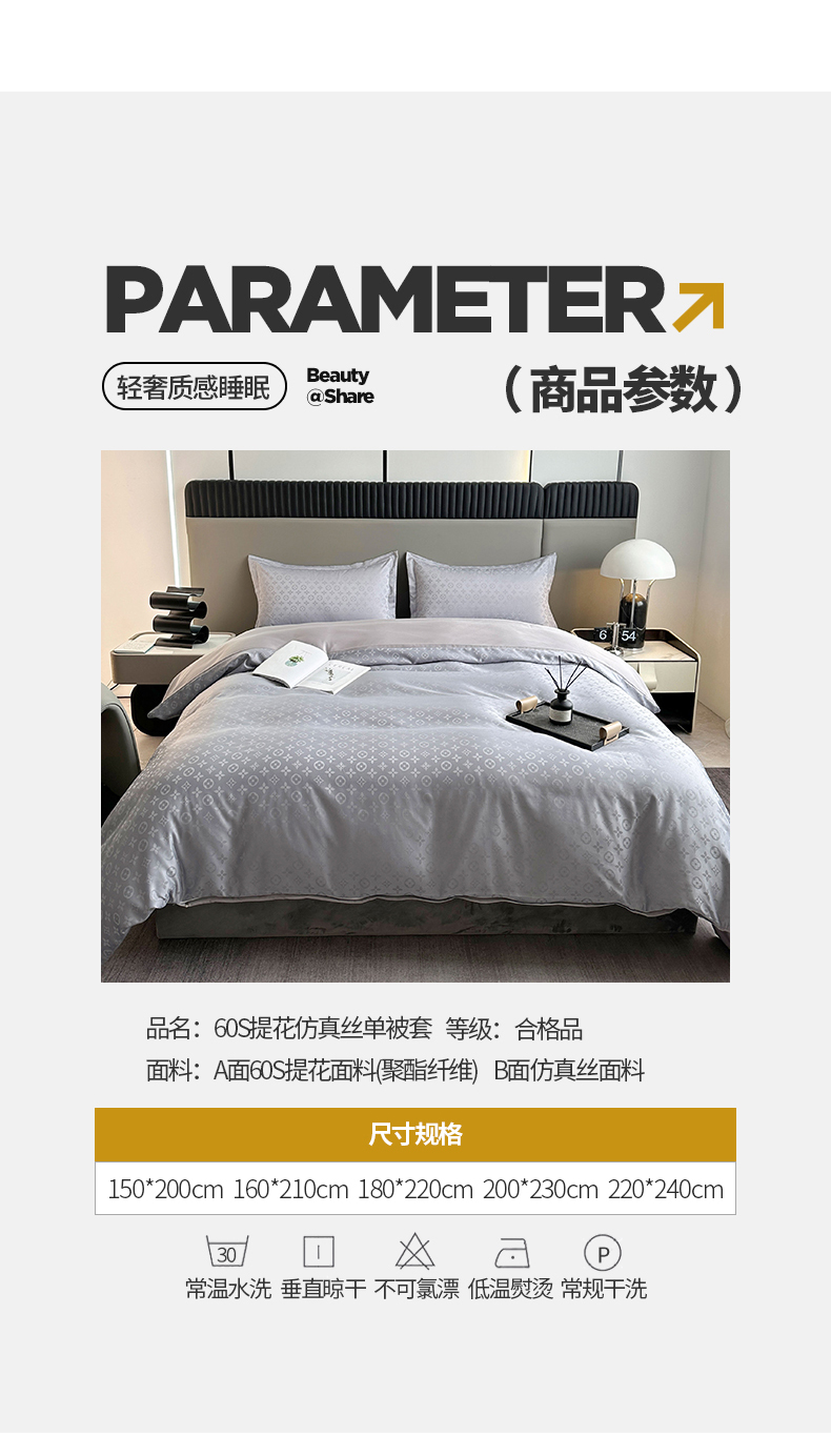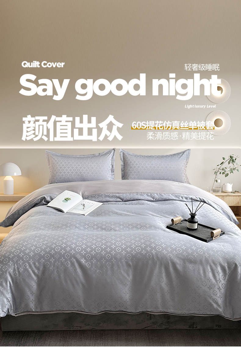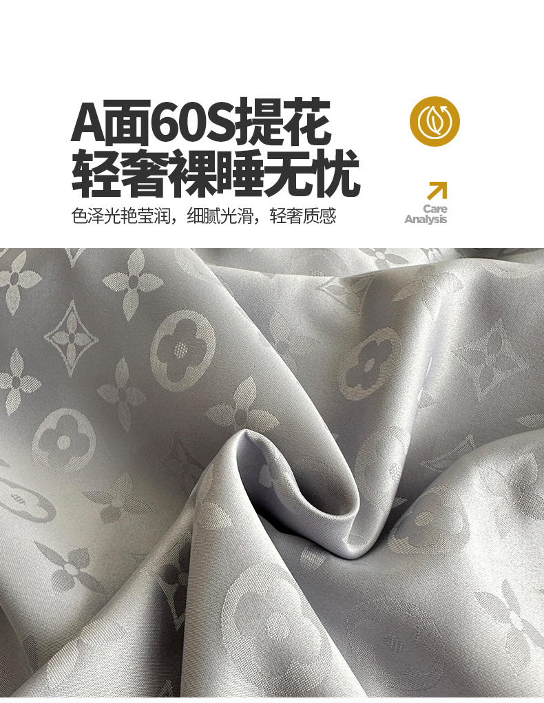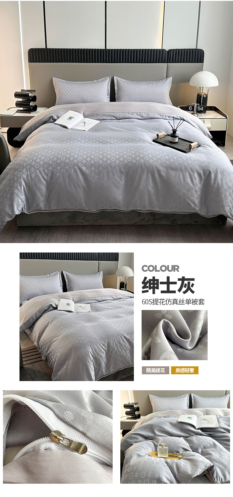 商品名称:云玲时尚 2025新款大牌风60S提花纯色轻奢贡缎水洗真丝单品被套 绅士灰