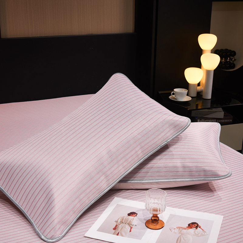 商品名称:小萌虎 2025新款碳光抗菌冰丝凉席床笠 水云间-粉