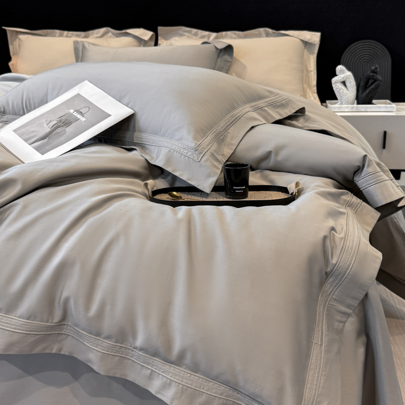 (总)21度C 2025春夏新款50双股100S长绒棉纯棉双埋线镂空四件套,经典灰,奶咖,水绿,樱桃粉