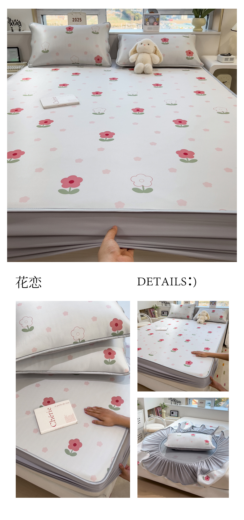 丝羽坊 2025新款小版印花冰丝凉席冰丝席碳光冰丝凉席-床笠款 花恋