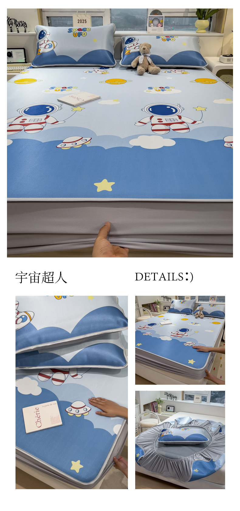 商品名称:丝羽坊 2025新款小版印花冰丝凉席冰丝席碳光冰丝凉席-床笠款 宇宙超人