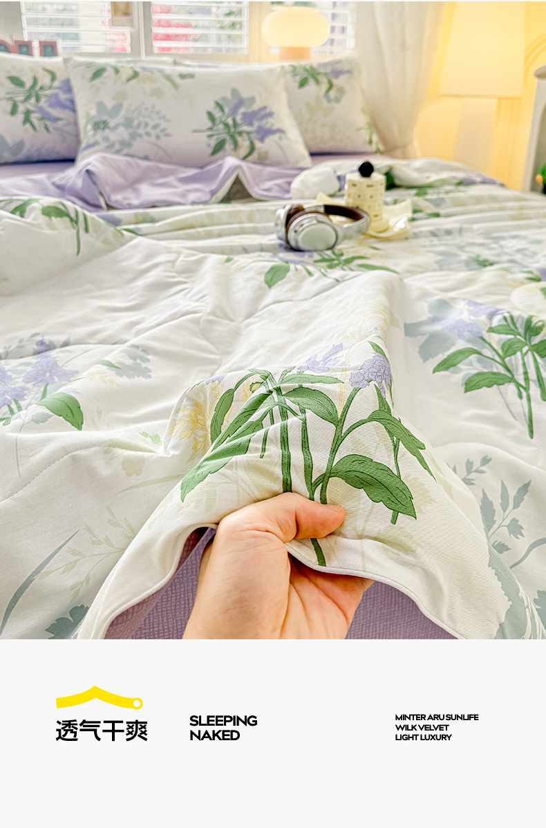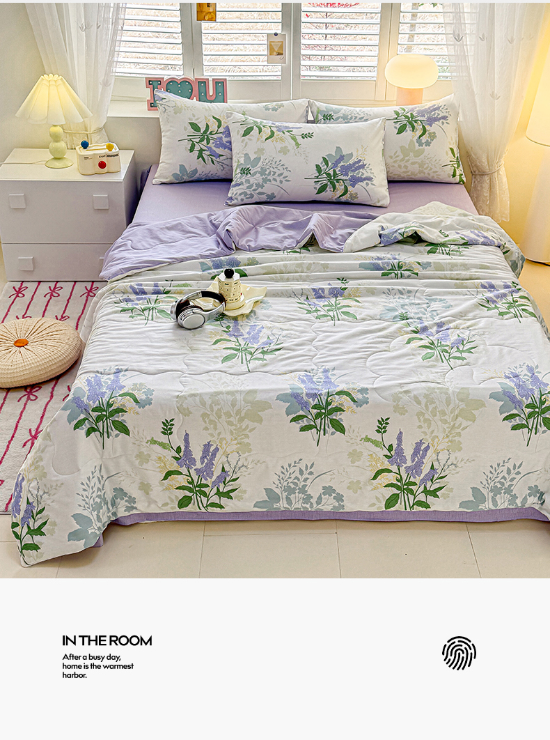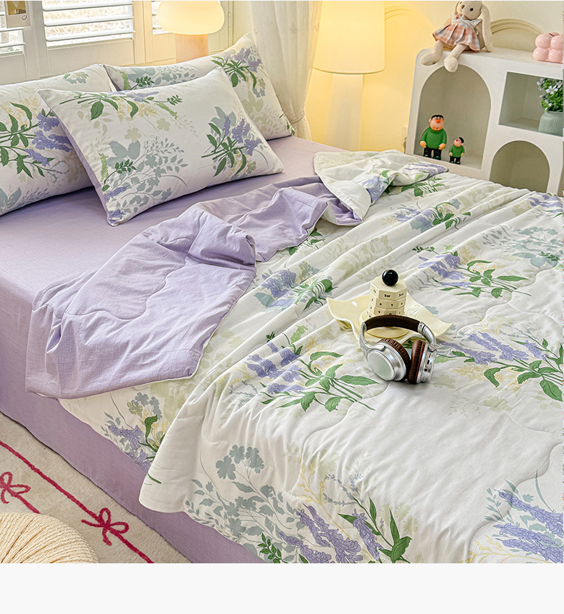 当前位置: 91家纺网 > 商品网购 > 床品套件 > 四件套 > 洺兰家居 2025新款A类全棉印花麻绳款夏被四件套 紫薰