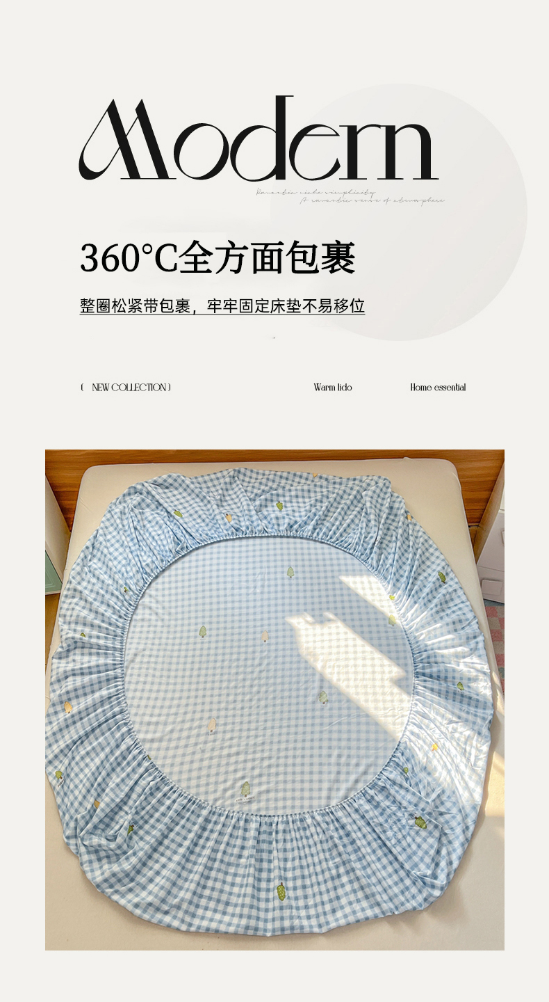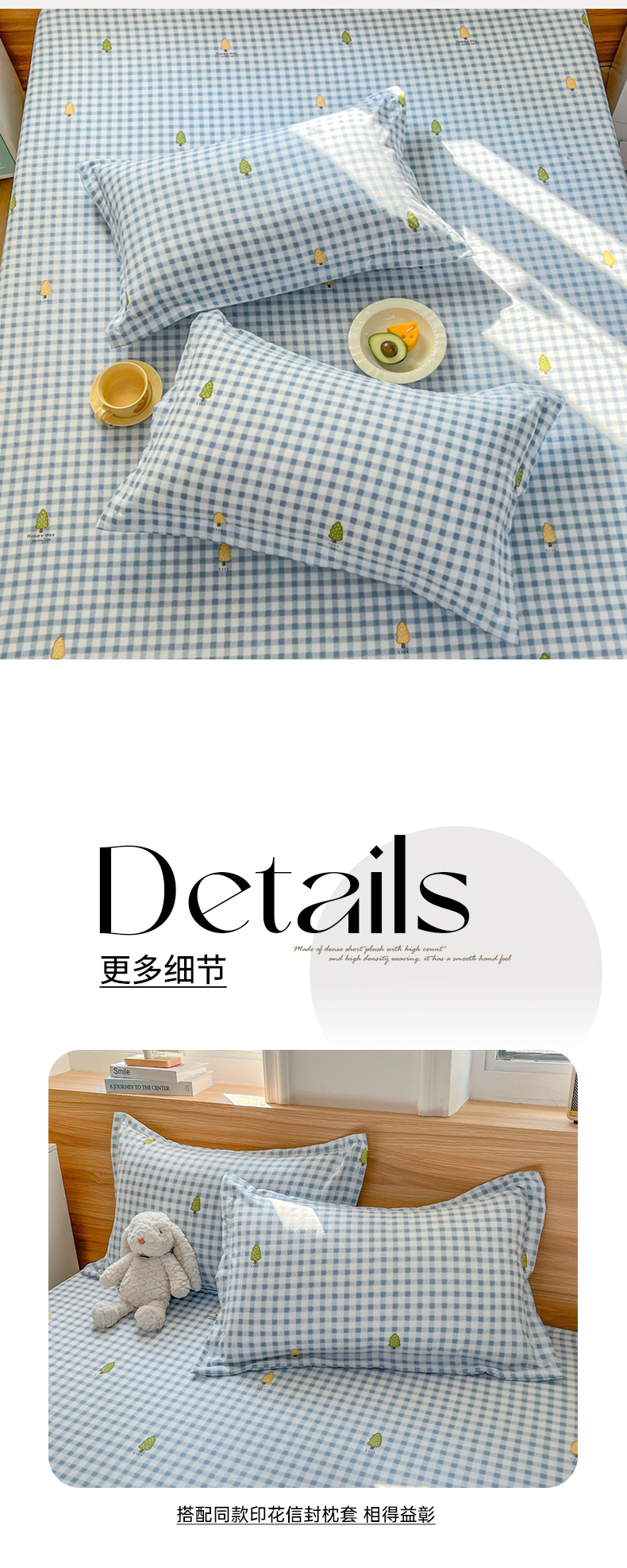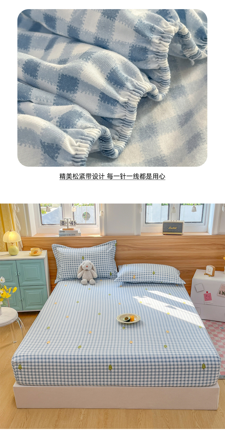 • 91家纺网 家纺一手货源 找家纺 默忆 2025新款针织双层纱印花糯小棉床笠 格子森林