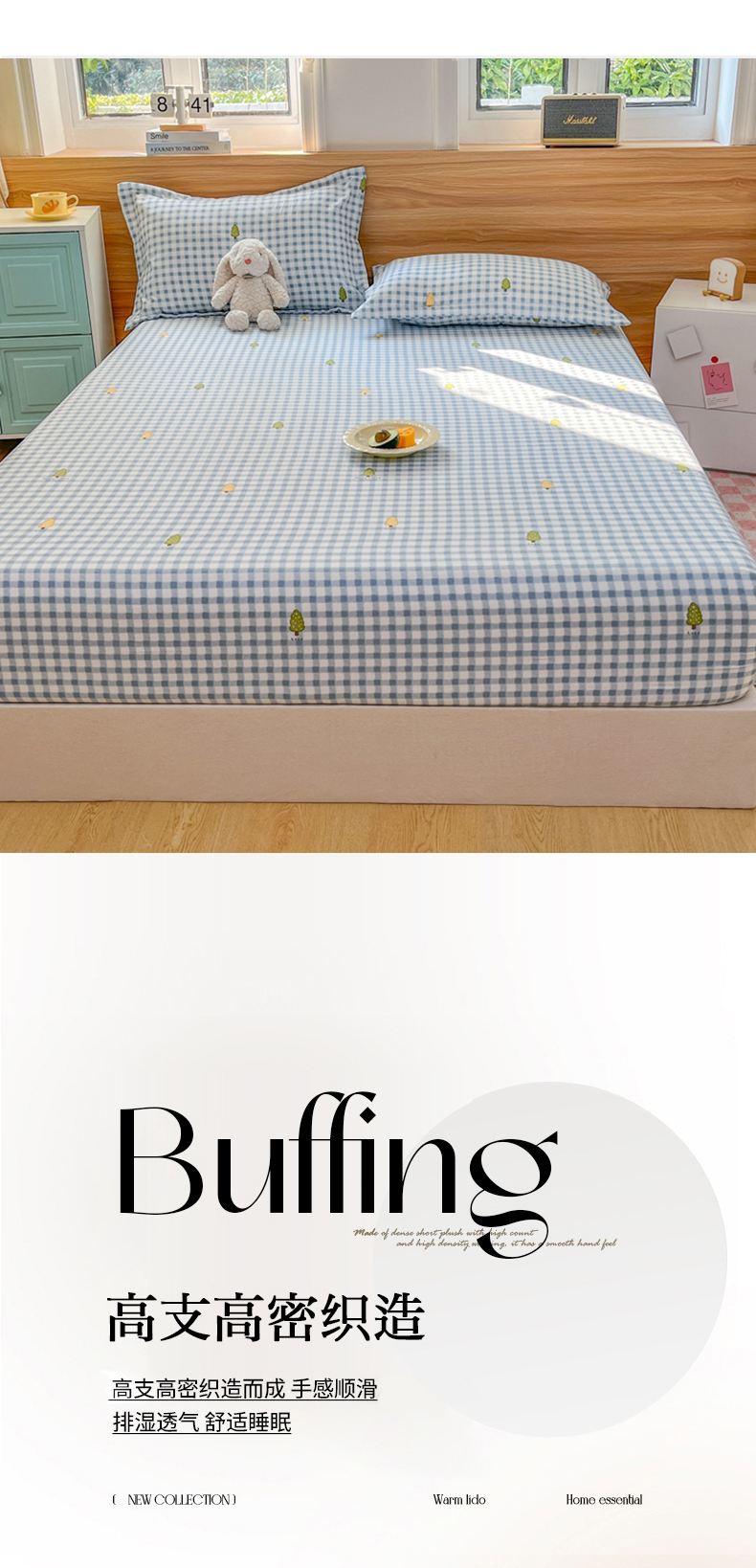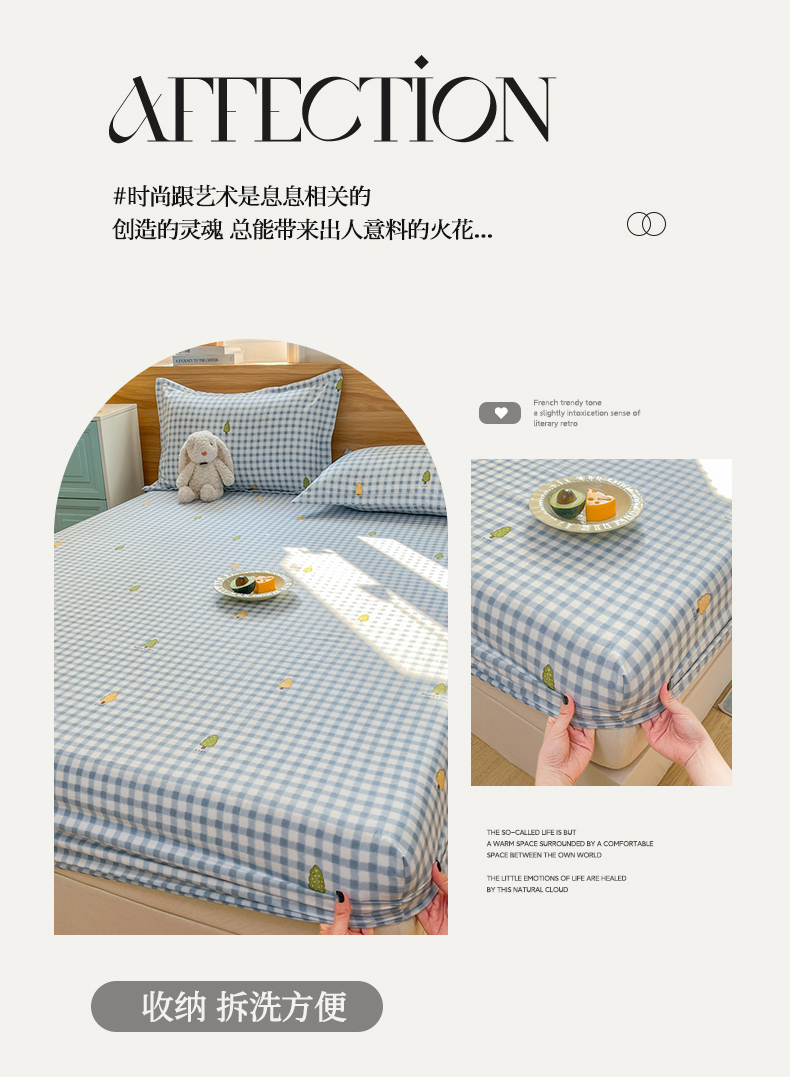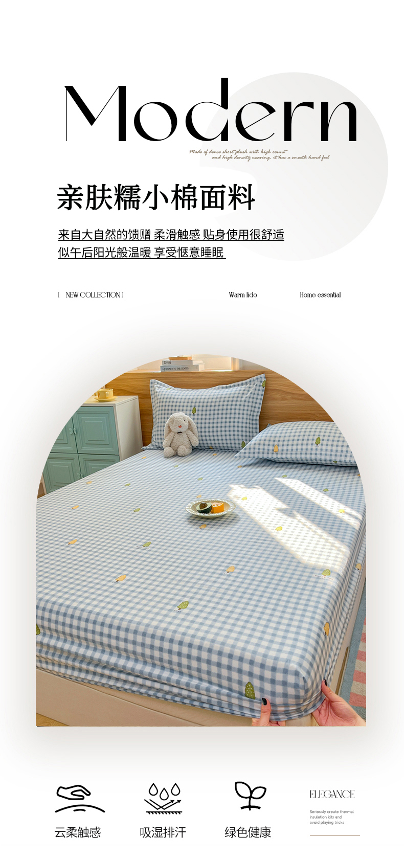 • 91家纺网 家纺一手货源 找家纺 默忆 2025新款针织双层纱印花糯小棉床笠 格子森林