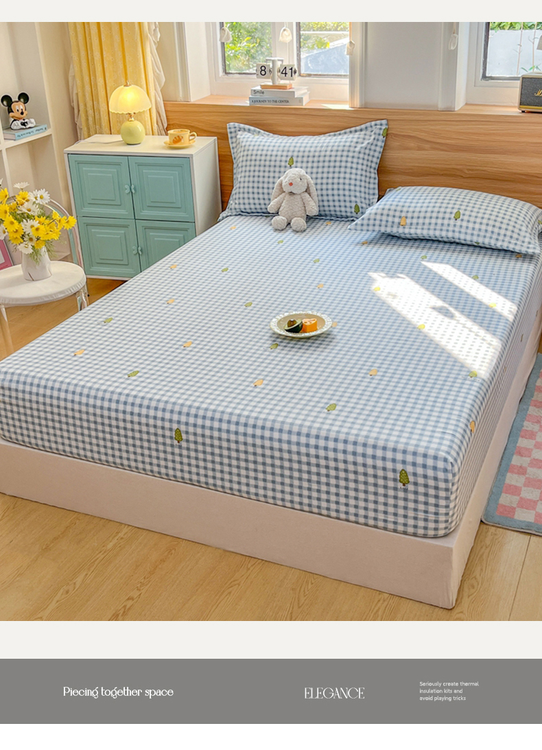 默忆 2025新款针织双层纱印花糯小棉床笠 格子森林