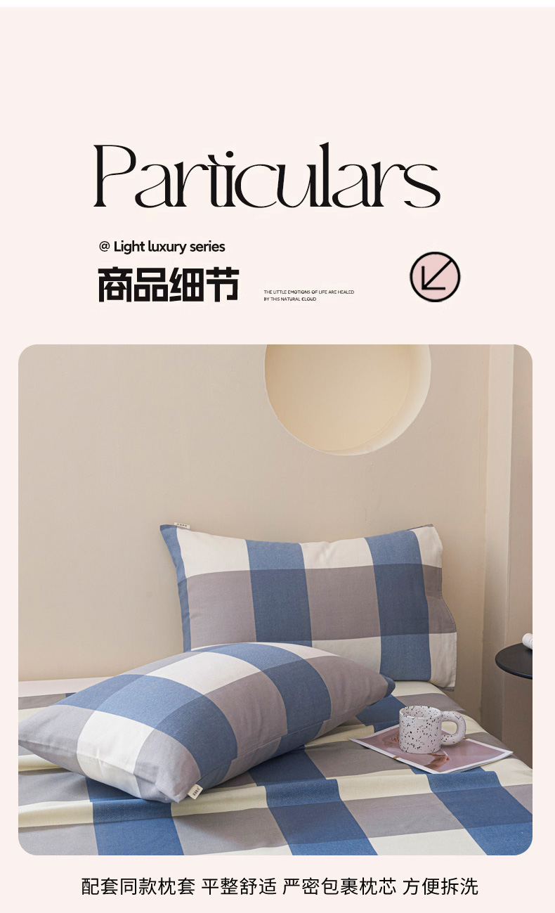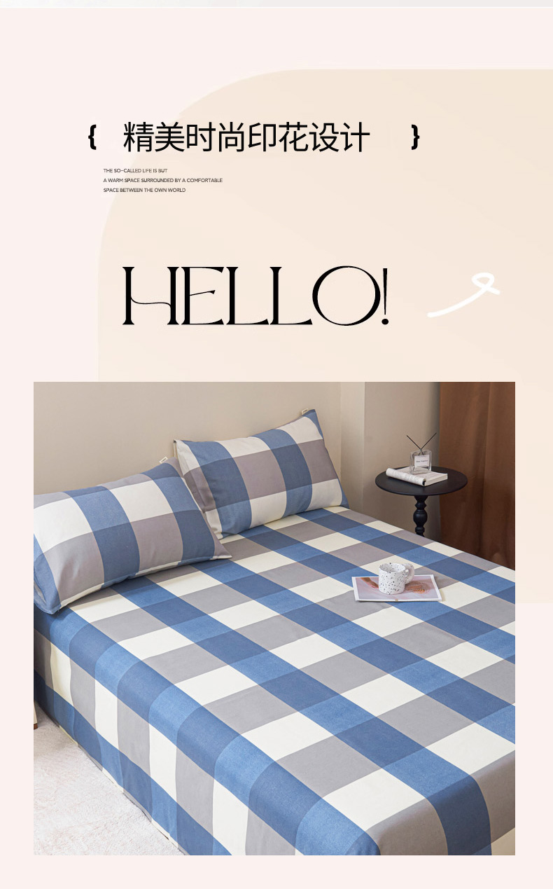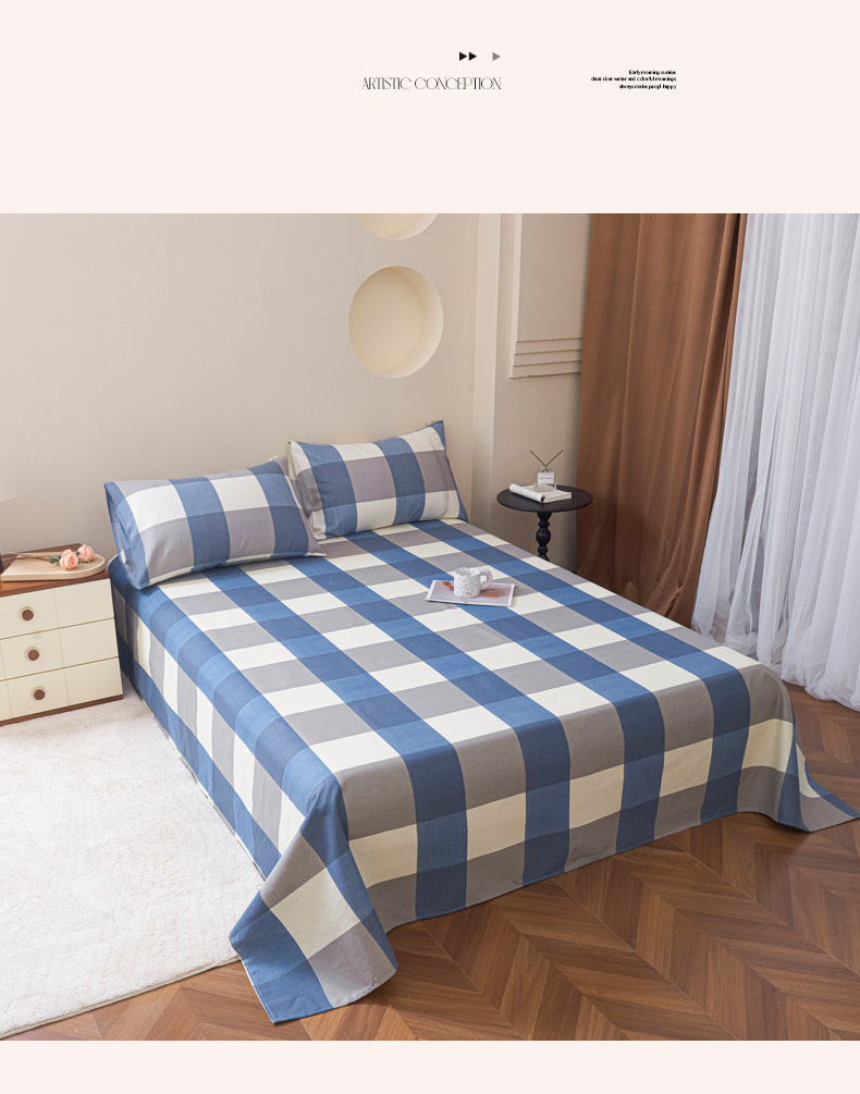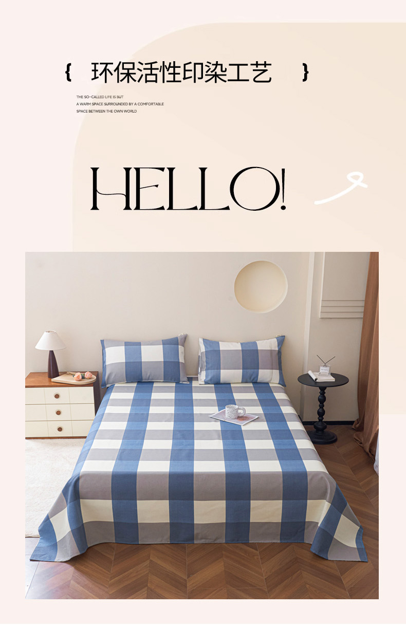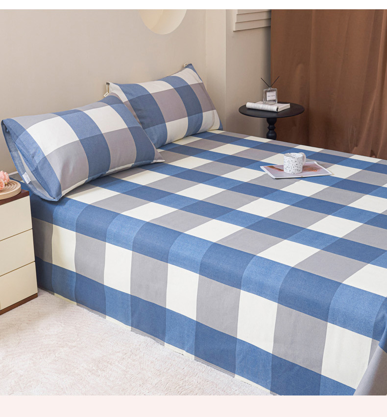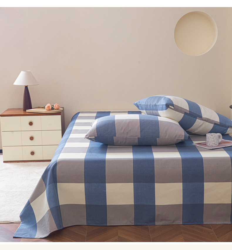 绒艺席业 2025新款简约原棉印花老粗布床单 蓝白格