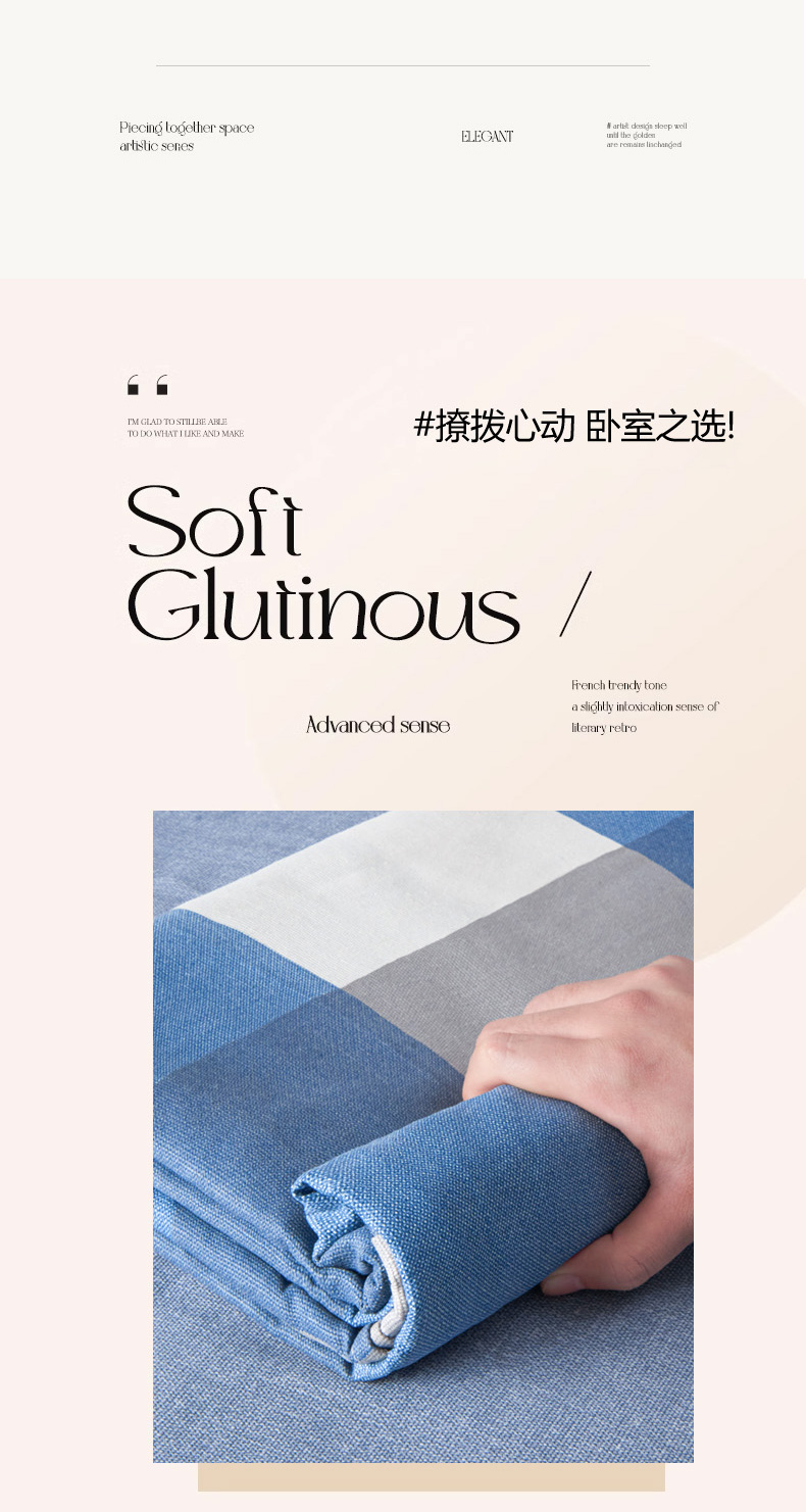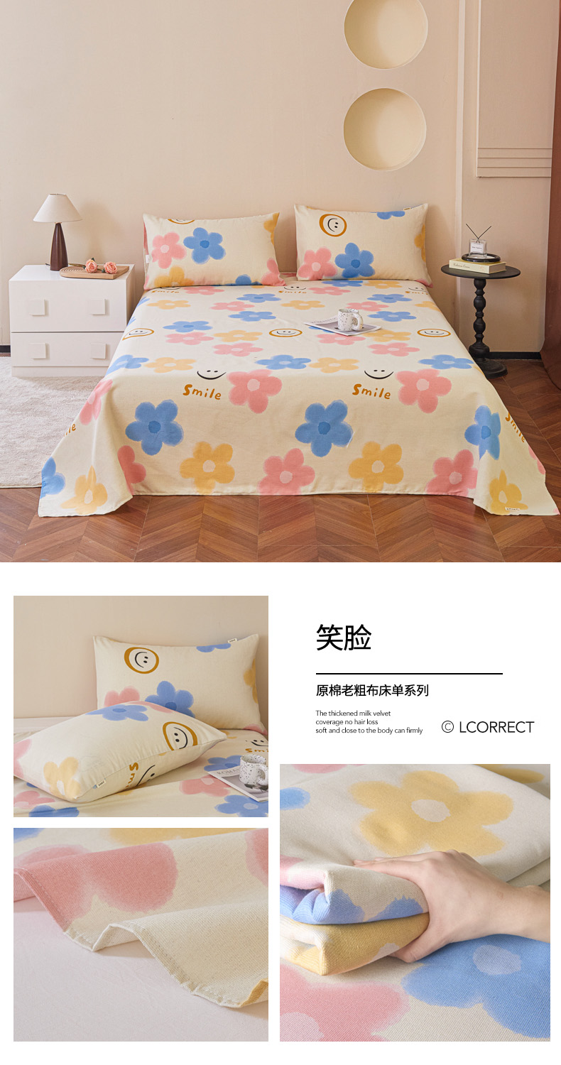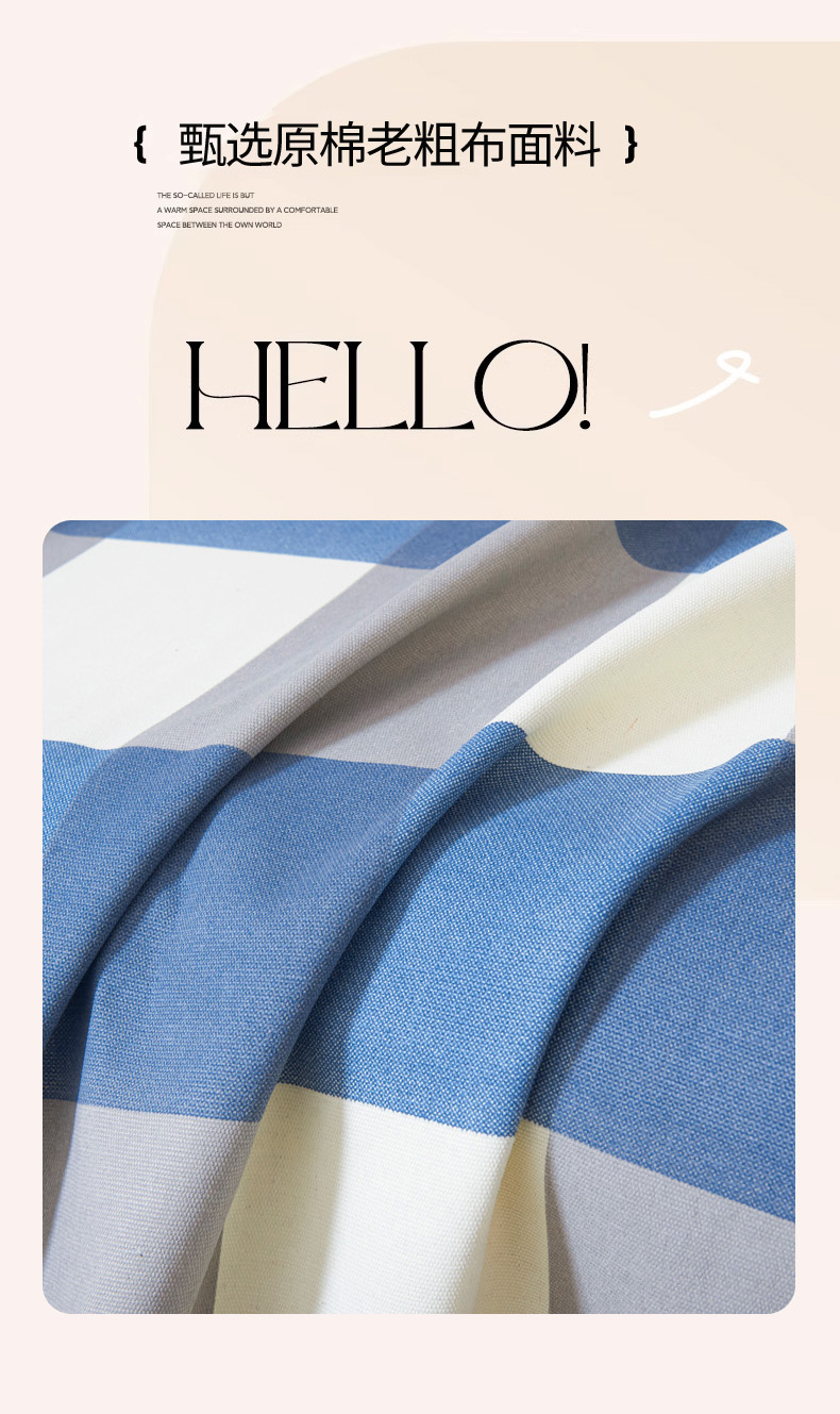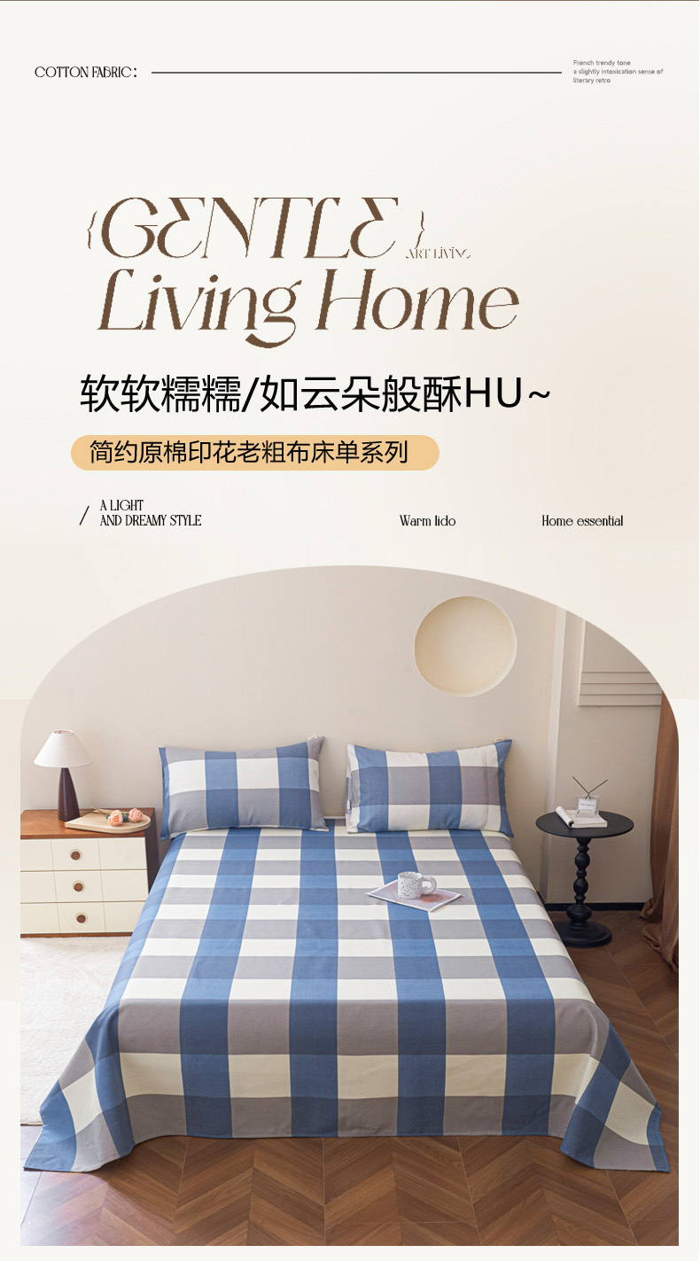 • 91家纺网 家纺一手货源 找家纺 绒艺席业 2025新款简约原棉印花老粗布床单 蓝白格