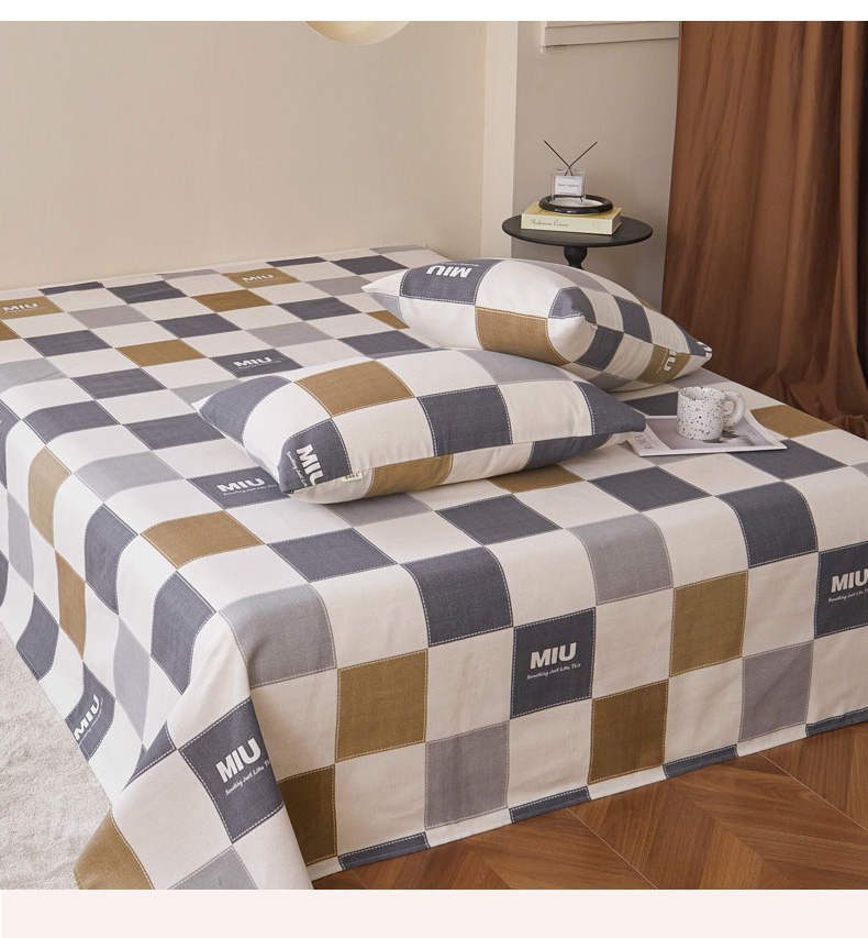 绒艺席业 2025新款简约原棉印花老粗布床单 浅蓝小格