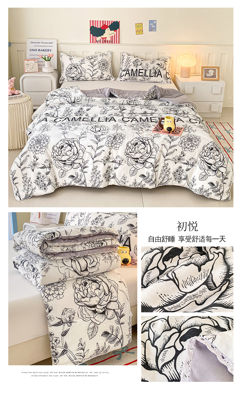 商品名称:佰亿莱 2025春夏新款水洗棉羽丝绒小花边夏被夏凉被空调被 初悦