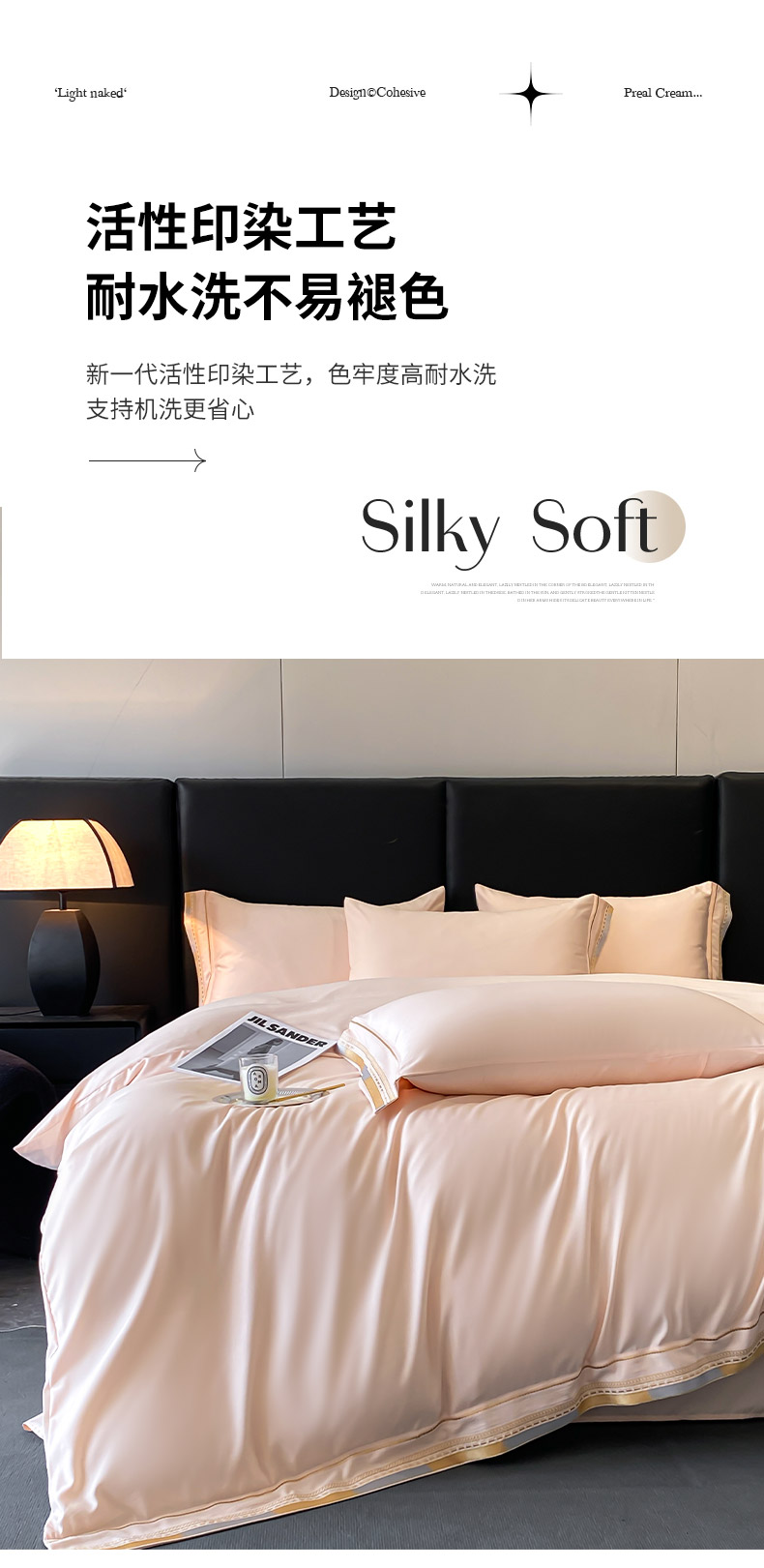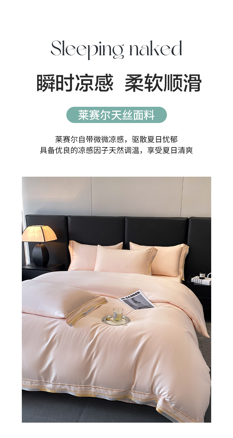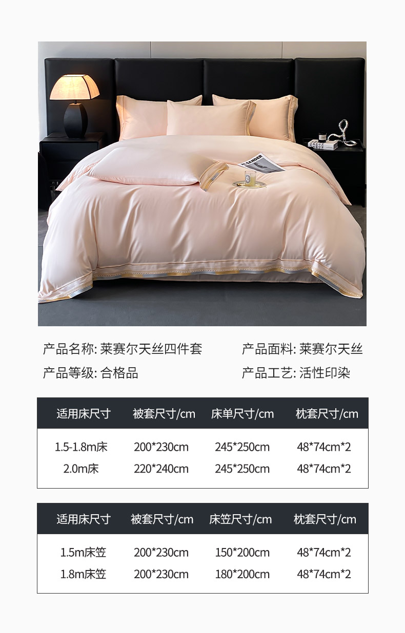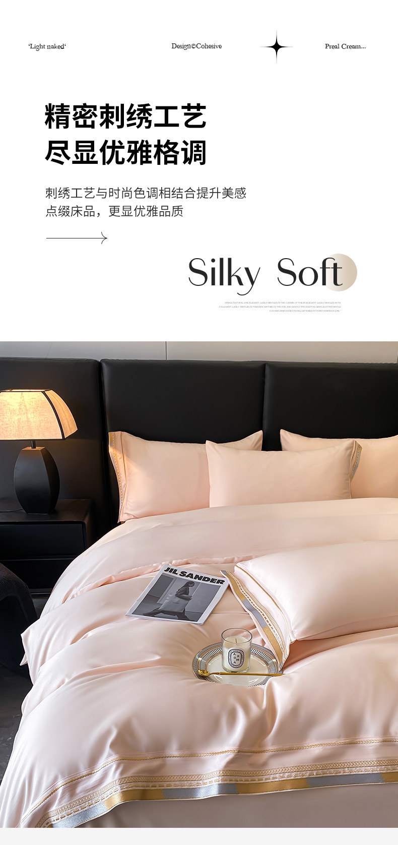 商品名称:金阳光家纺 2025新款莱赛尔天丝刺绣四件套 浅玉