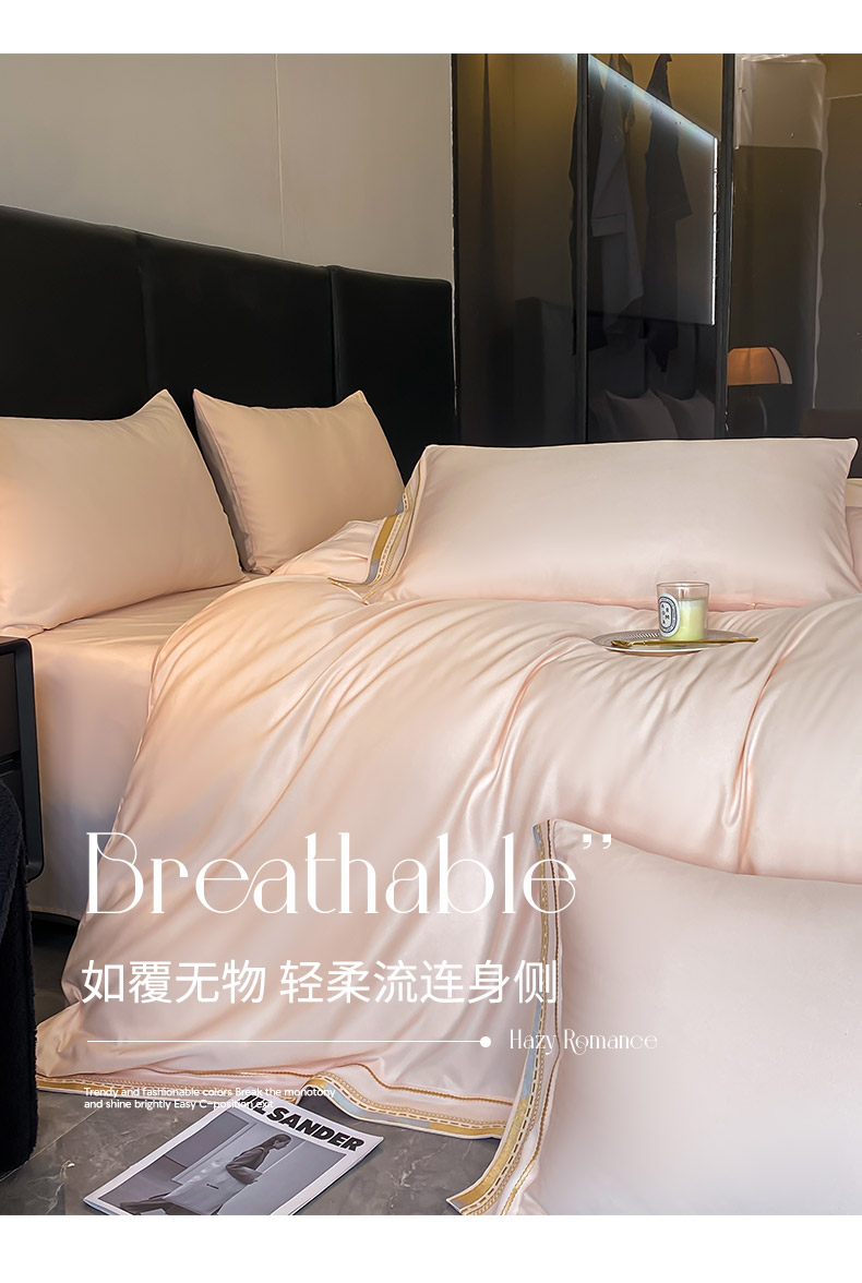 金阳光家纺 2025新款莱赛尔天丝刺绣四件套 浅玉
