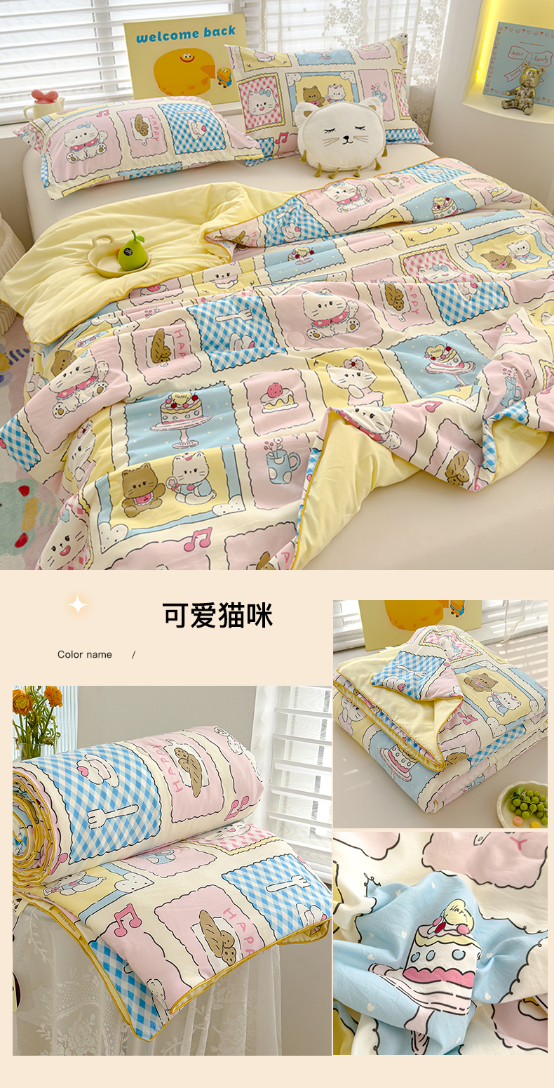 商品名称:星巴k家纺 2025新款A类水洗双层纱大豆纤维夏被夏凉被空调被 可爱猫咪