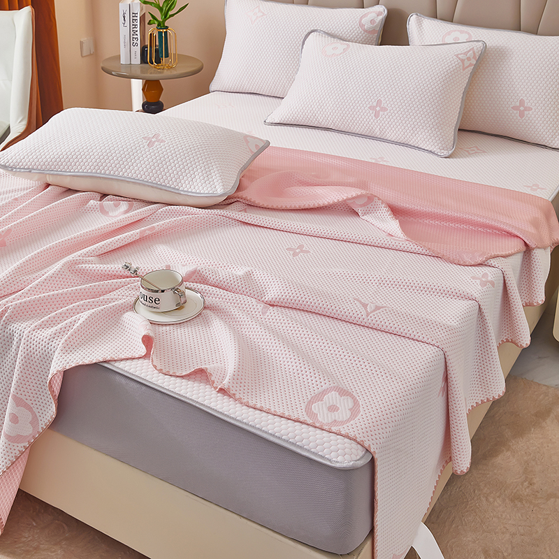 凤杰 2025新款冰豆豆凉豆豆凉席床笠款盖盖毯夏被四件套 四叶草-樱花粉,四叶草-樱花粉