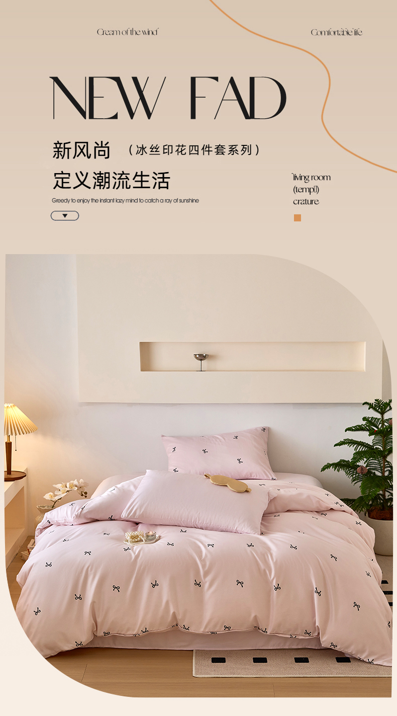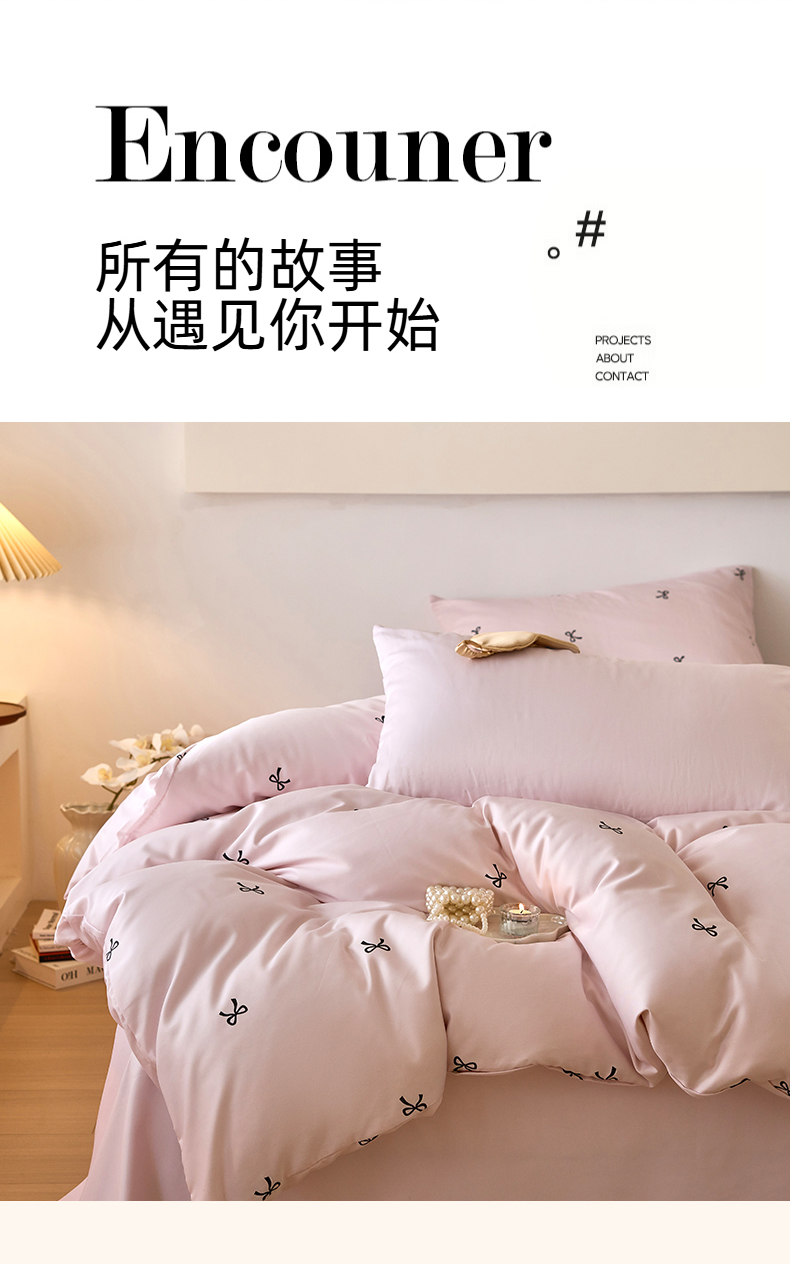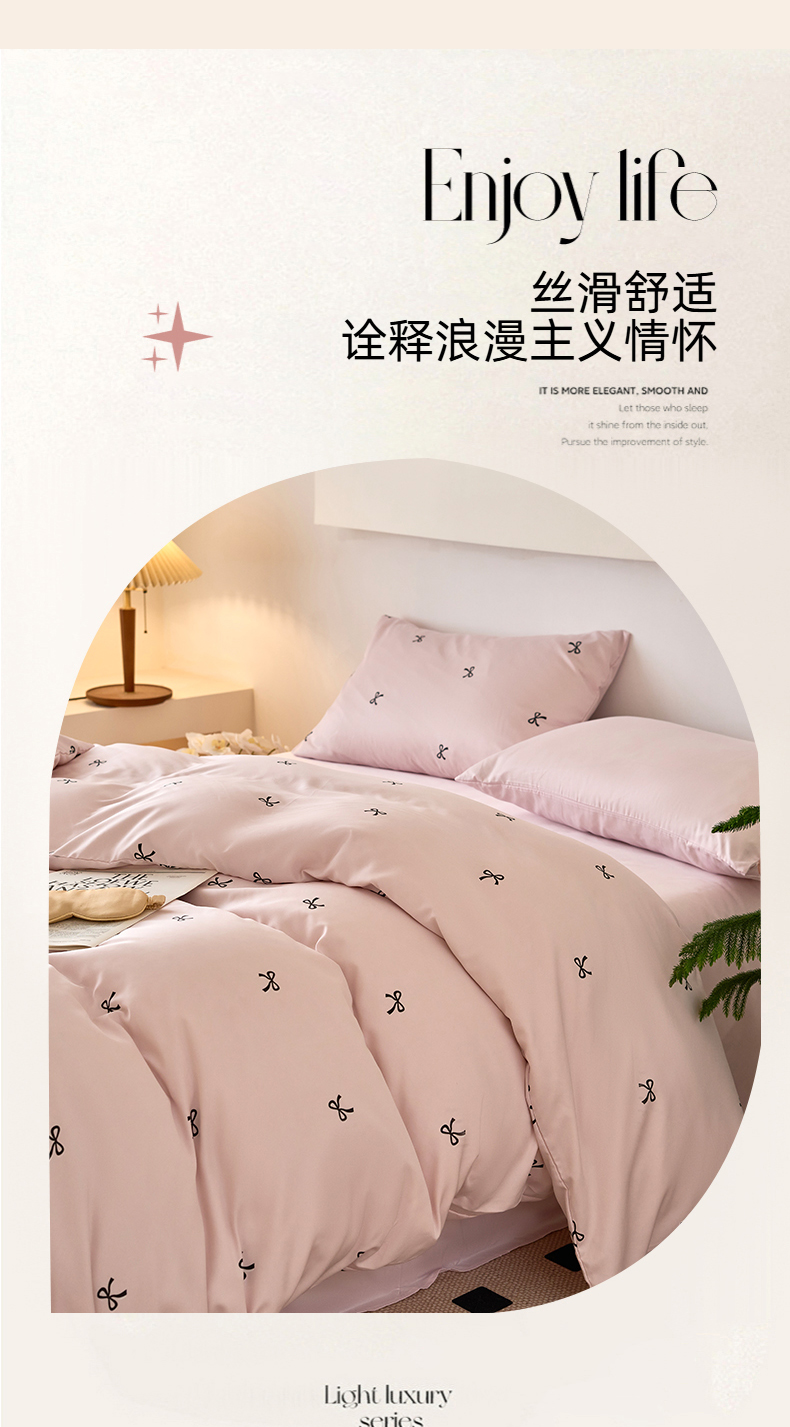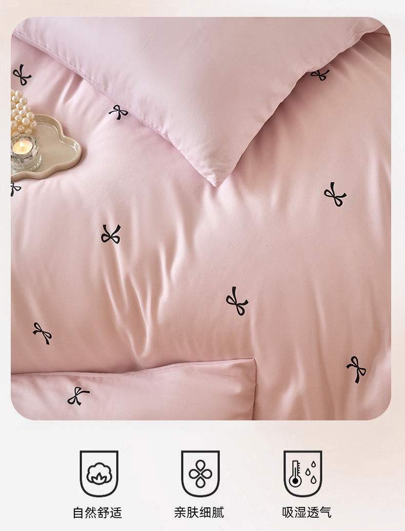 当前位置: 91家纺网 > 商品网购 > 床品套件 > 四件套 > 其它四件套 > 凯洛奇 2025新款简约小清新波点水洗冰丝天丝四件套-风格一 洛可-蝴蝶结粉