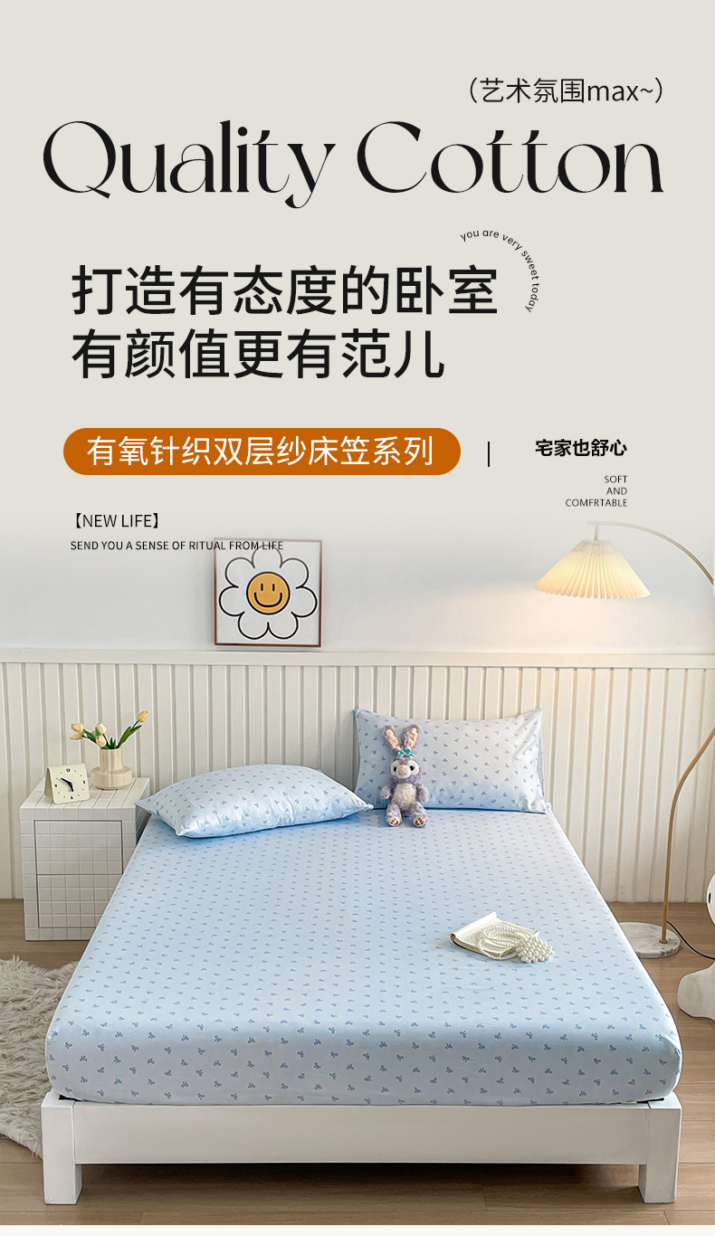 • 91家纺网 家纺一手货源 找家纺 芯元素 2025新款针织双层纱印花床笠 如初