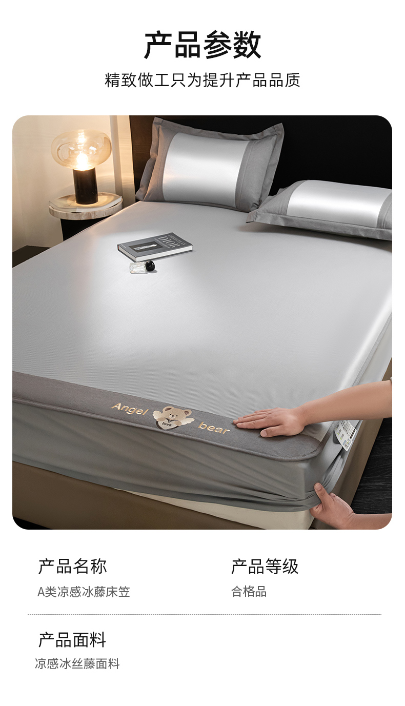 商品名称:孩子王家纺 2025新款轻柔丝凉席冰丝席-欢乐熊系列 床笠款-冰川粉