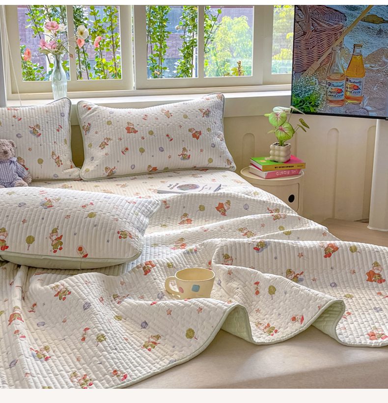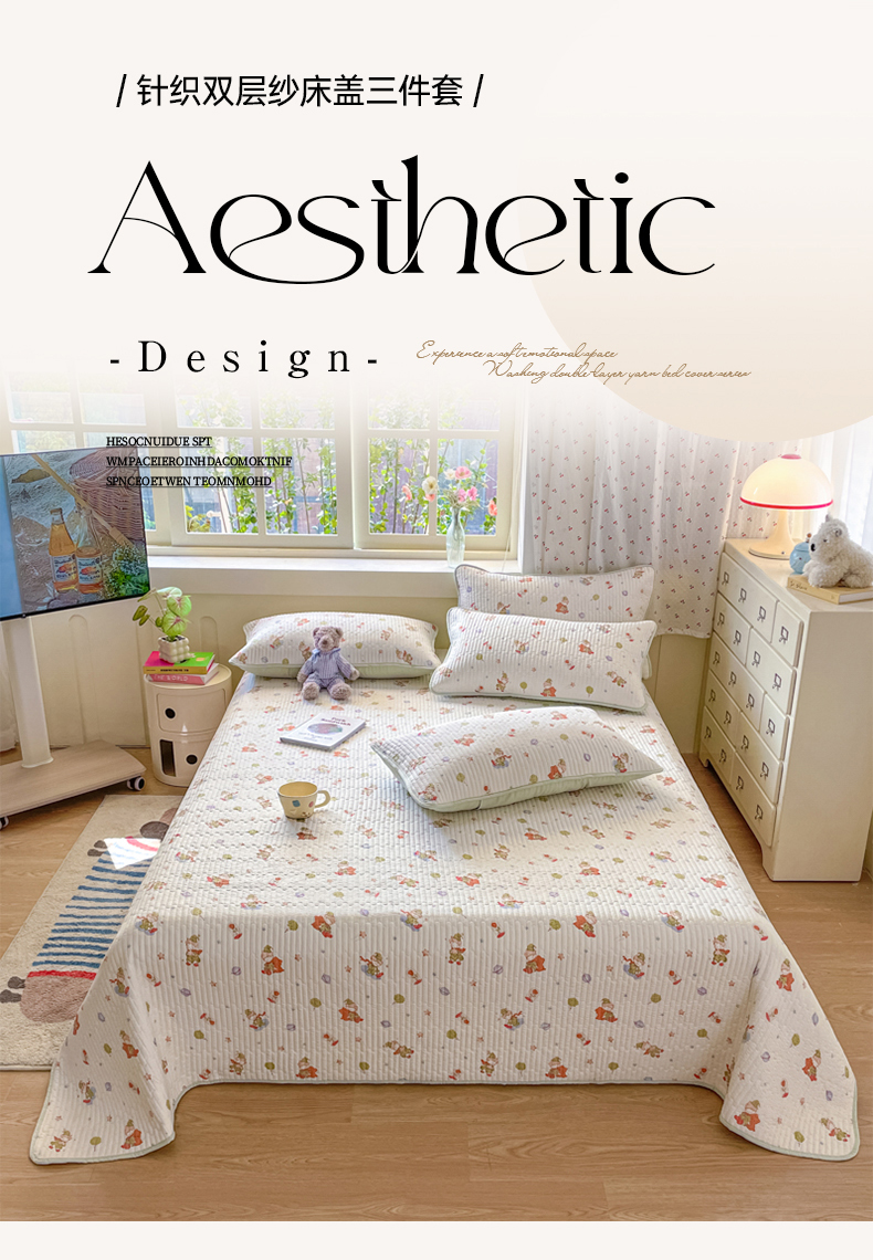 商品名称:857家居 2025新款针织双层纱床盖三件套 绿野仙踪