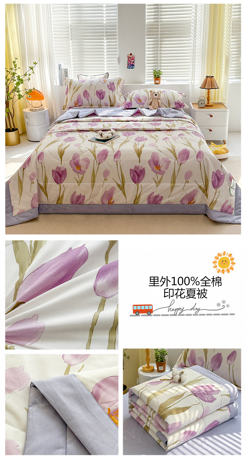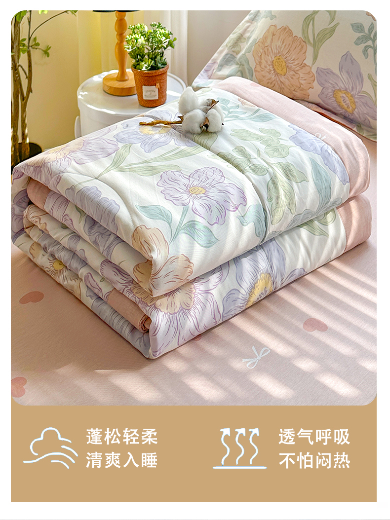 欧夏家纺 2025新款里外全棉印花夏被100%新疆棉花 草莓园