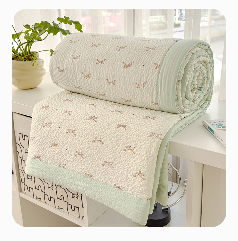 2025新款A类印花泡泡纱大豆夏凉被被子被芯 蝴蝶结