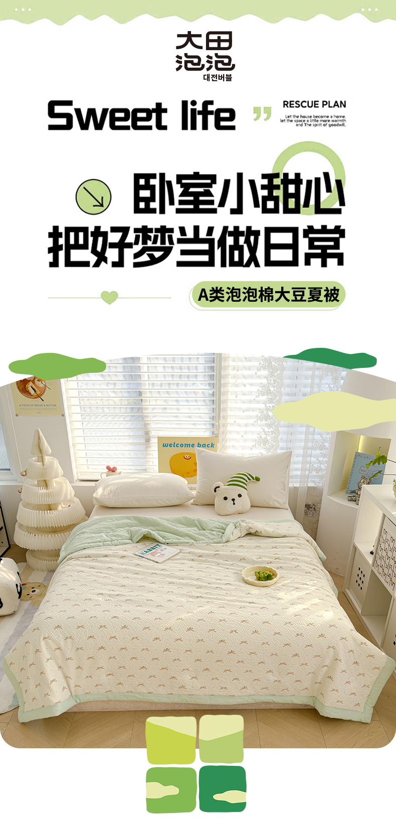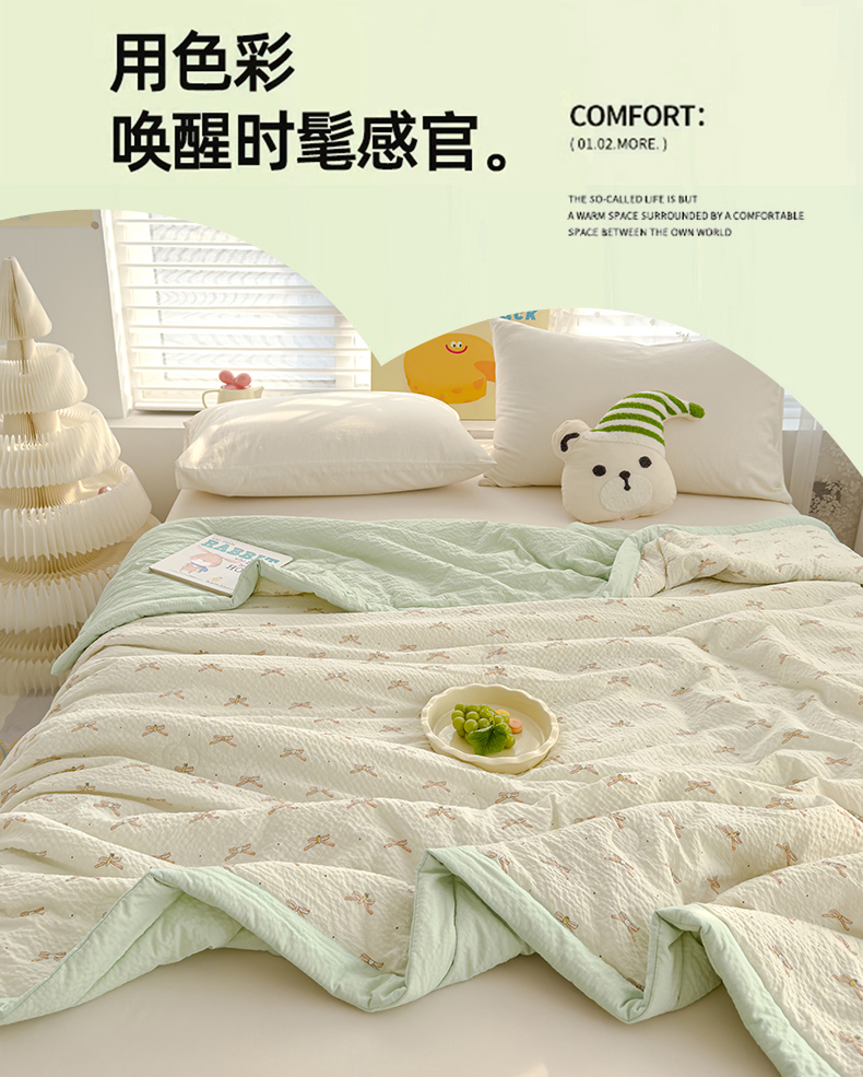 (总)睡棉坊 2025新款A类泡泡棉夏被韩版原创设计刺绣款空调被夏凉被,米白色,浅灰色,浅蓝色,浅玉色,水绿色,香槟色