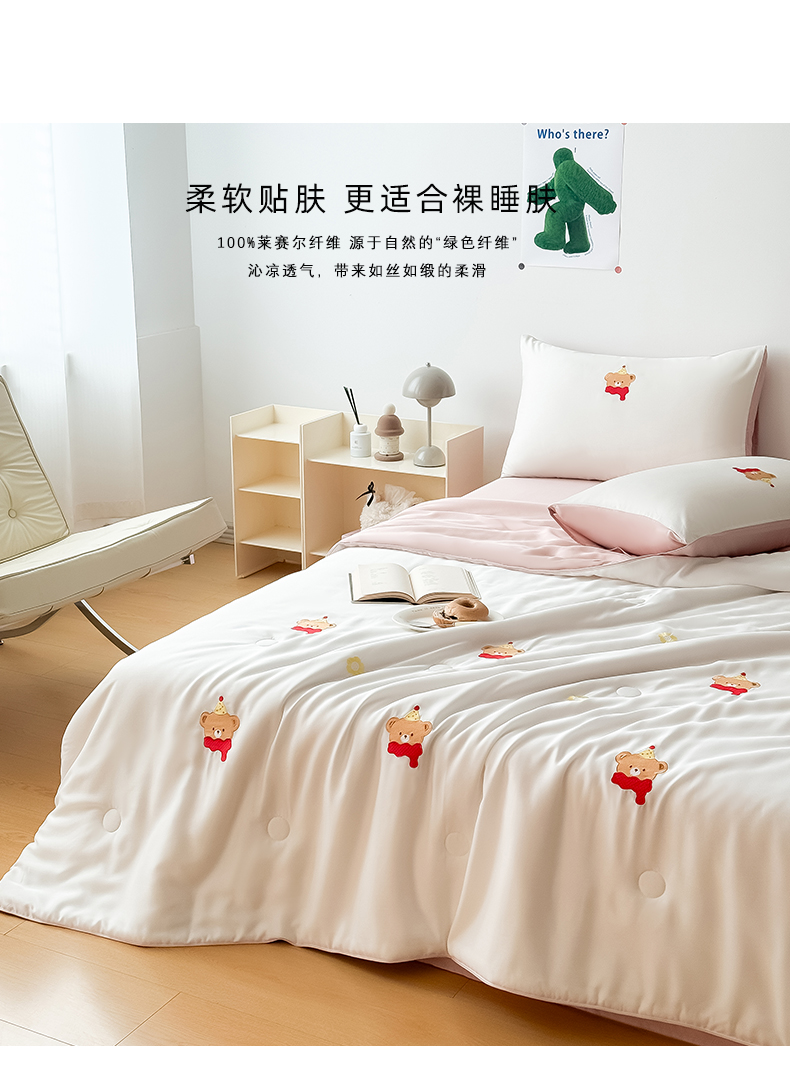 商品名称:Mr.pig猪先生家纺-2025新款天丝绣花夏被四件套空调被 气质熊