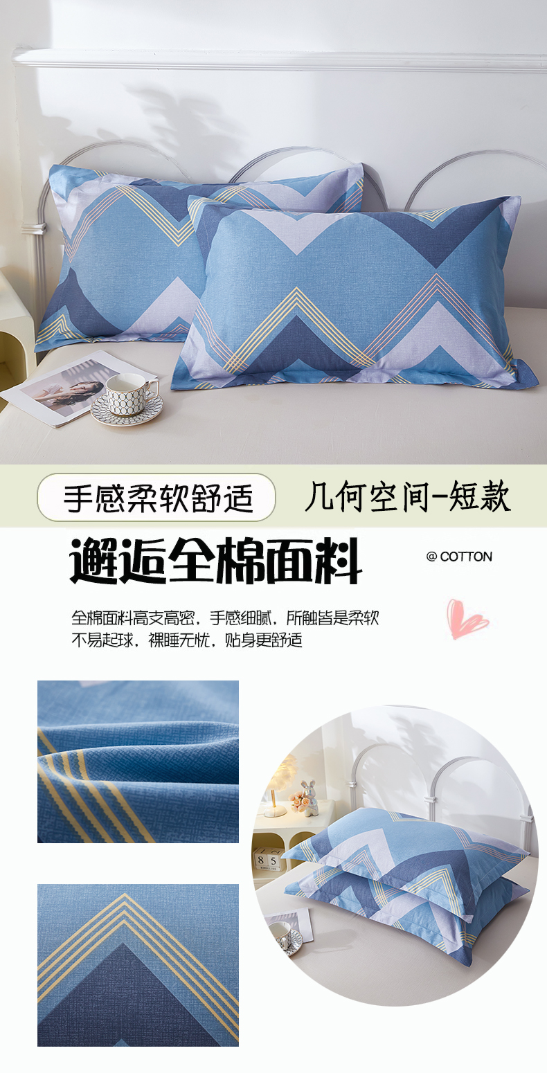 商品名称:三盛源 2025新款枕套全棉48x74cm信封一对学生宿舍纯棉枕头套枕皮单人枕芯通用 几何空间