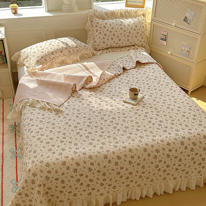 昊川 2025新款60支全棉双层纱酵素高温砂洗法式床盖 小美满