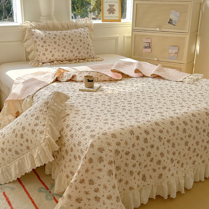 商品名称:昊川 2025新款60支全棉双层纱酵素高温砂洗法式床盖 小美满