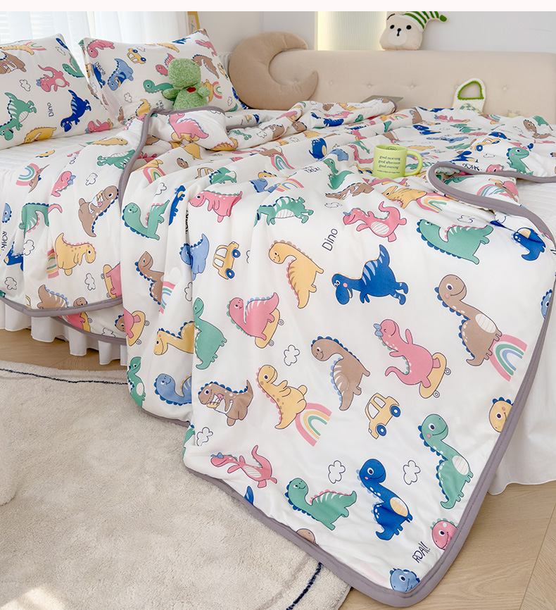 贝扬思家纺 2025新款针织棉印花夏被系列 恐龙冒险