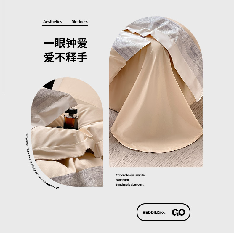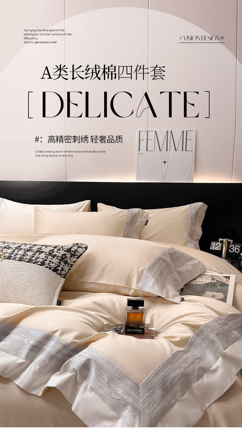 (总) 2026新款高端轻奢风A类贡缎长绒棉四件套纯棉重工刺绣被套床单高级感床笠床上用品,格拉芙-芸粉,格拉芙-柔杏