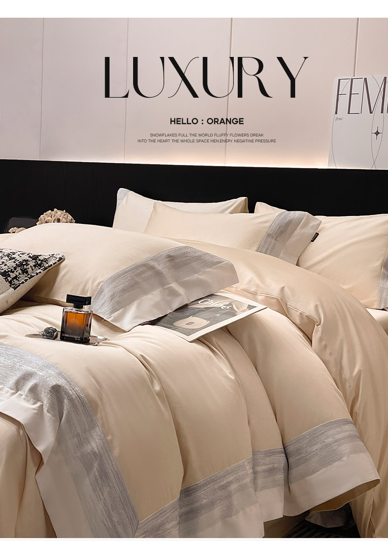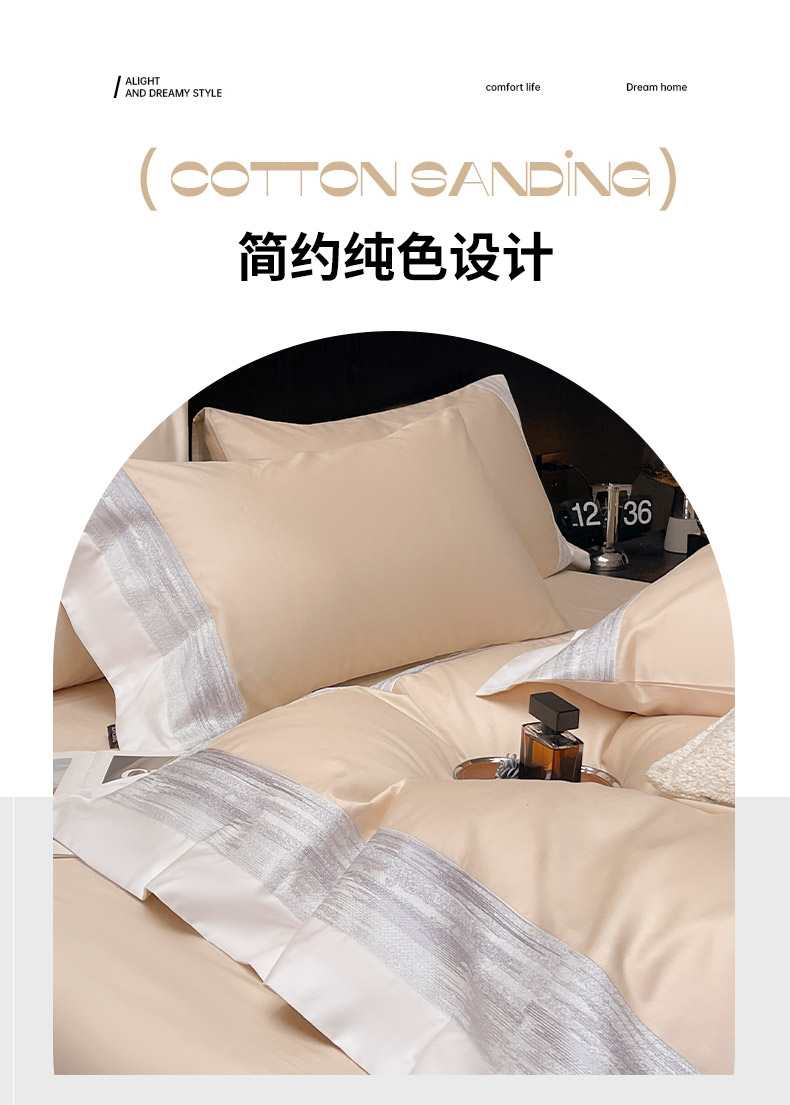 商品名称: 2025新款高端轻奢A类母婴级长绒棉全工艺刺绣四件套纯棉全棉高端春夏季爆款床上用品 瑾雅-束缦杏