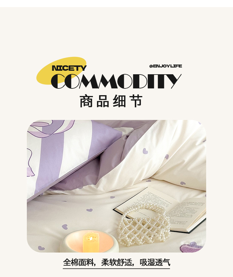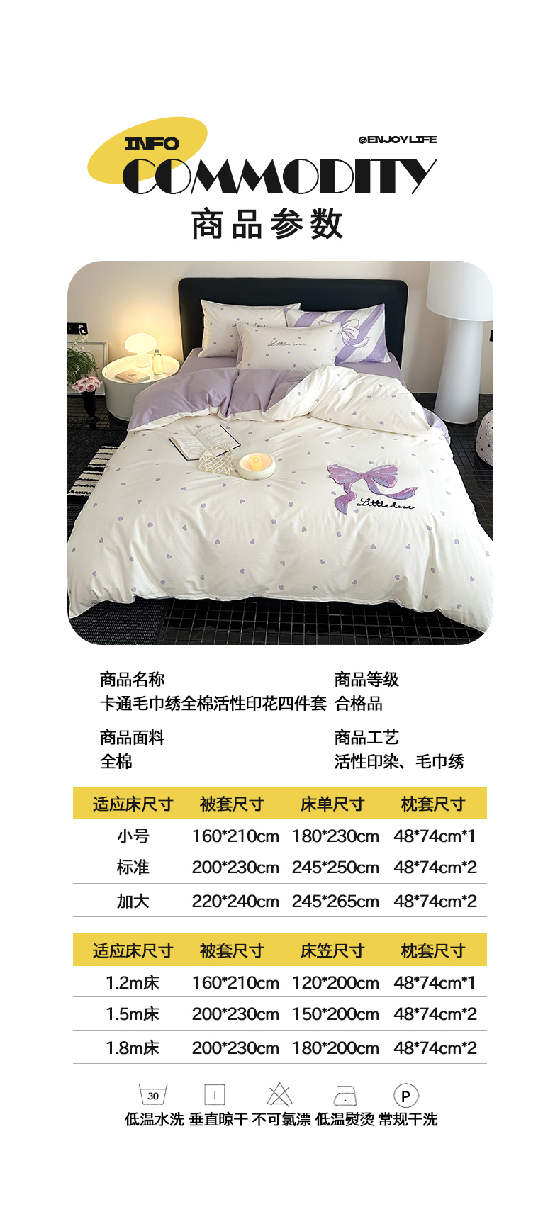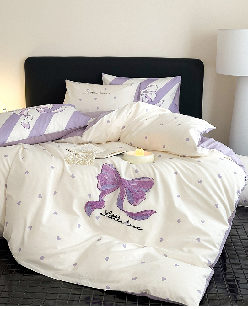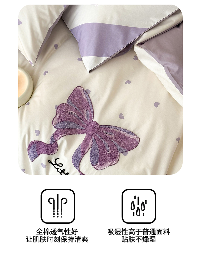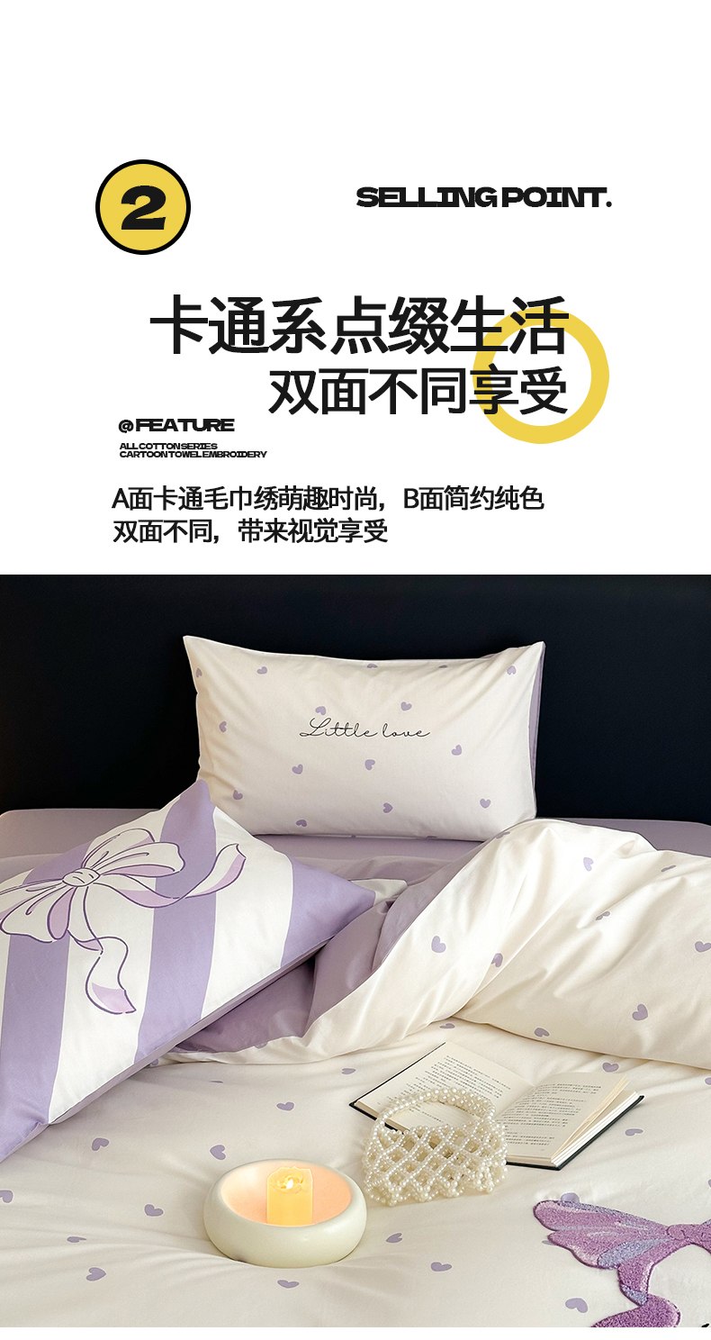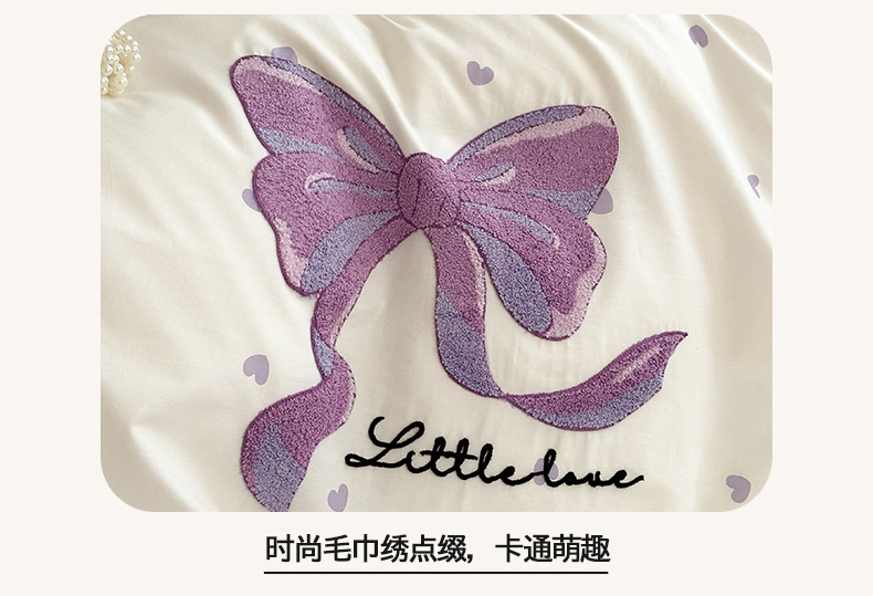 商品名称:花言狐语 2025新款13372全棉印花毛巾绣四件套(提供买家秀) 紫色心情