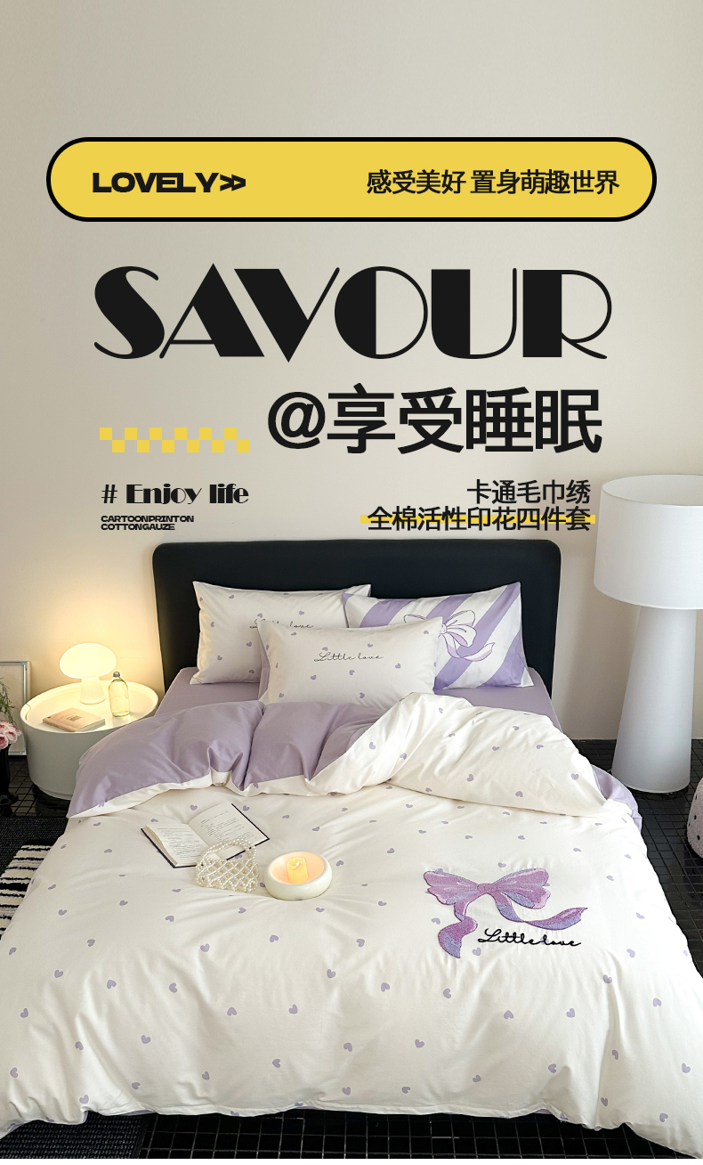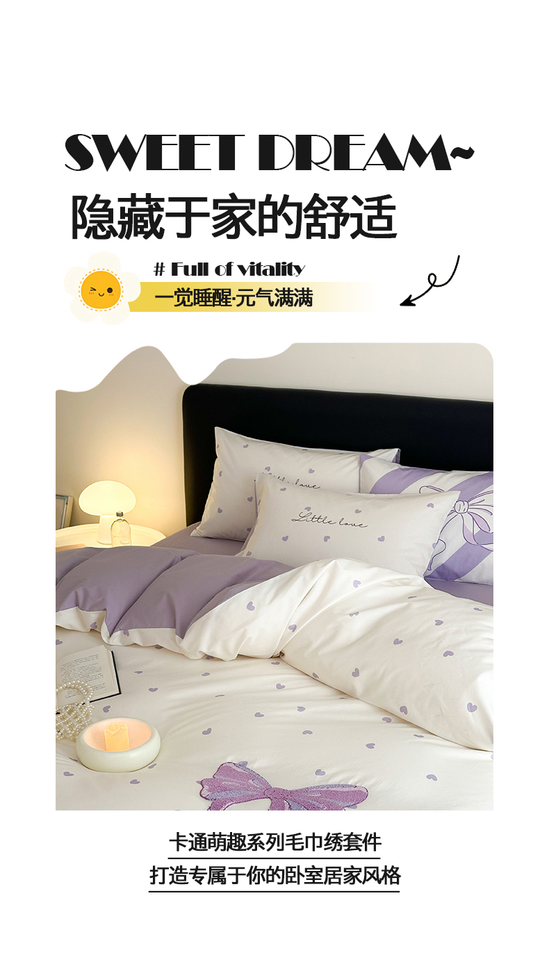 花言狐语 2025新款13372全棉印花毛巾绣四件套(提供买家秀) 紫色心情