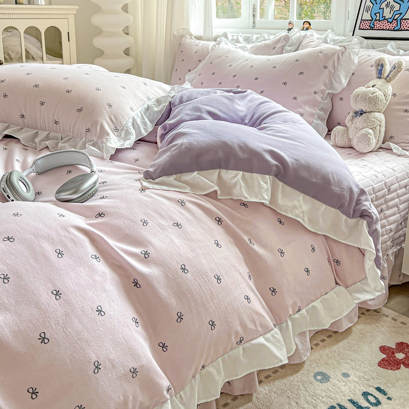 当前位置: 91家纺网 > 商品网购 > 床品套件 > 四件套 > 双层纱四件套 > 麦朵家居2025新款双层纱针织棉床盖款四件套 蝴蝶-紫