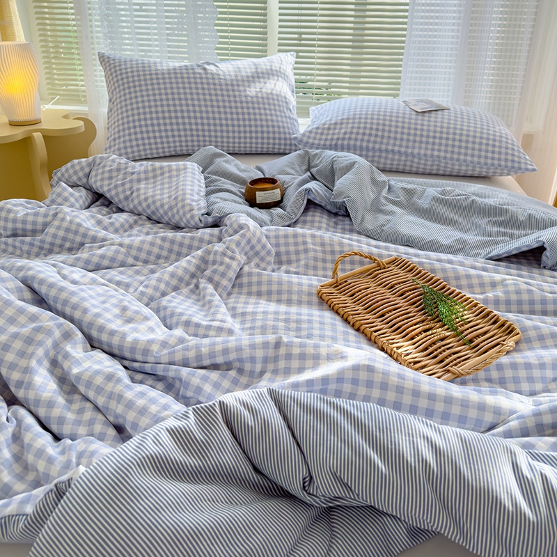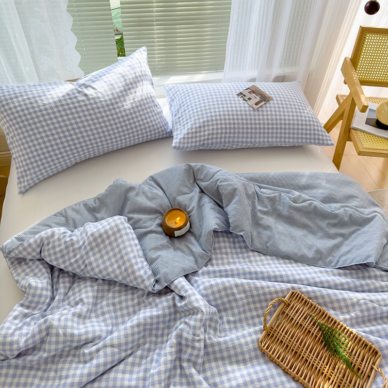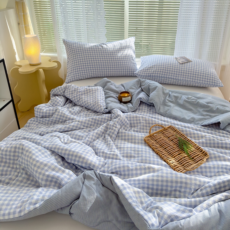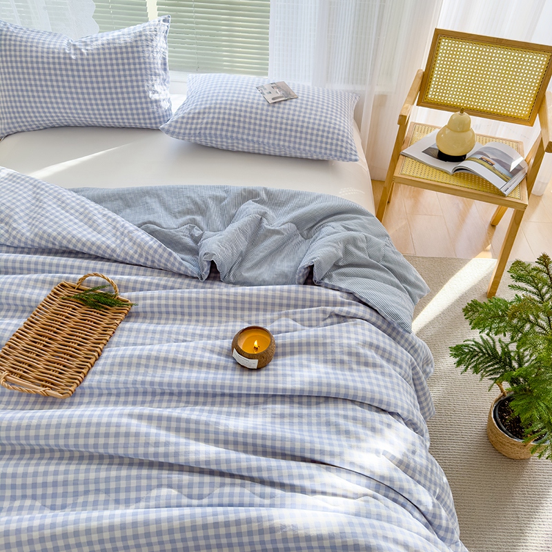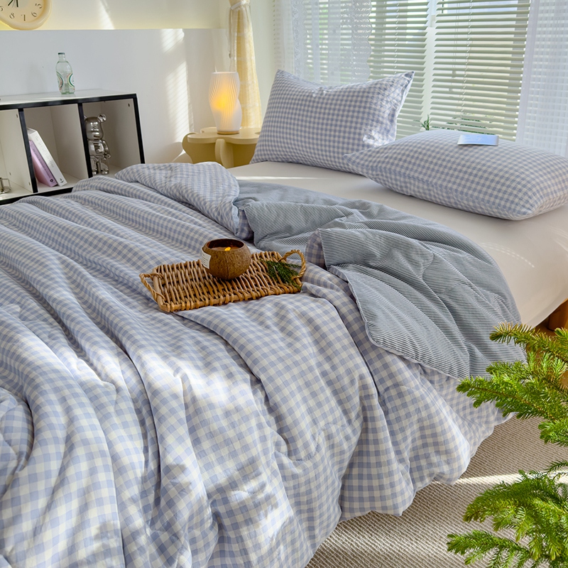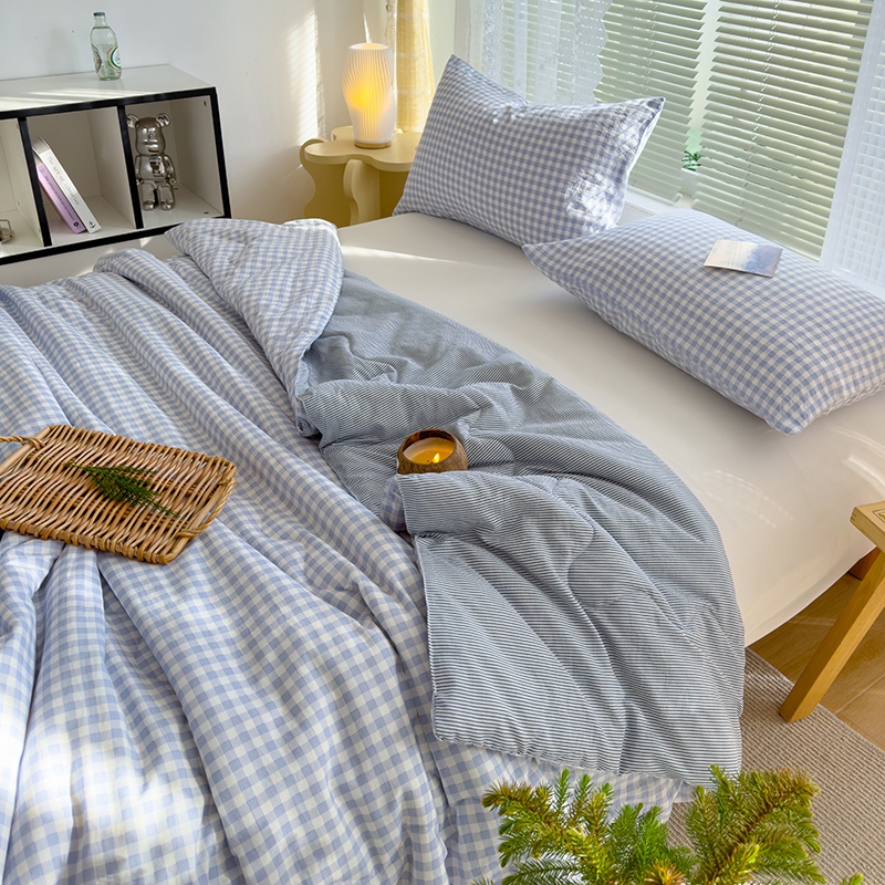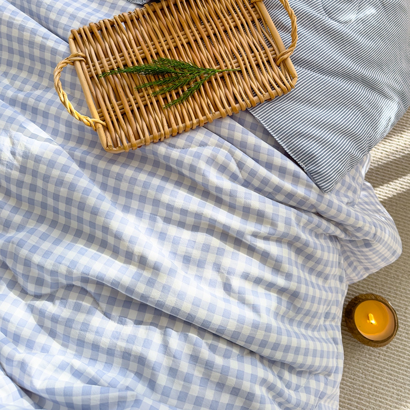 2025新款无印风夏被 蓝小格