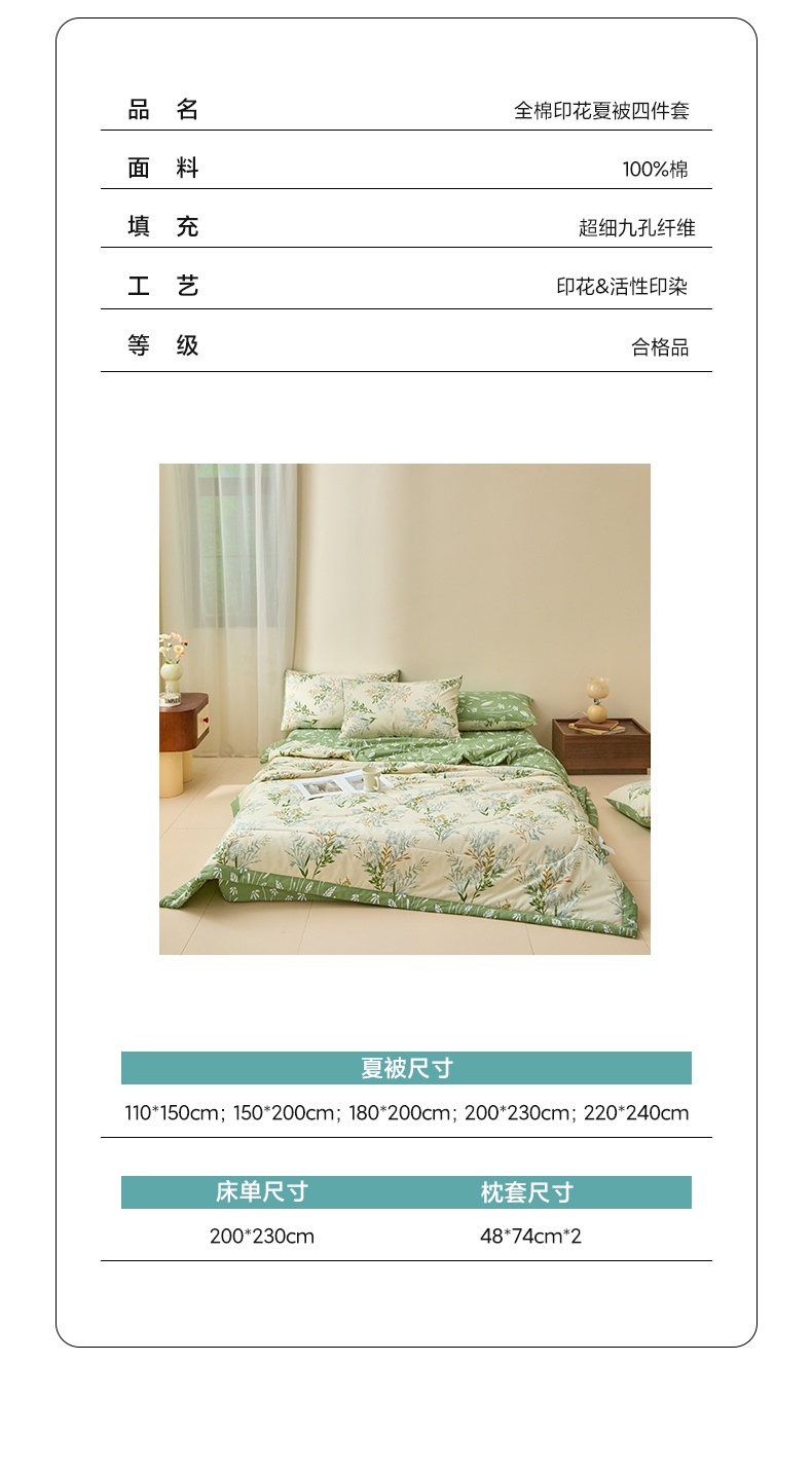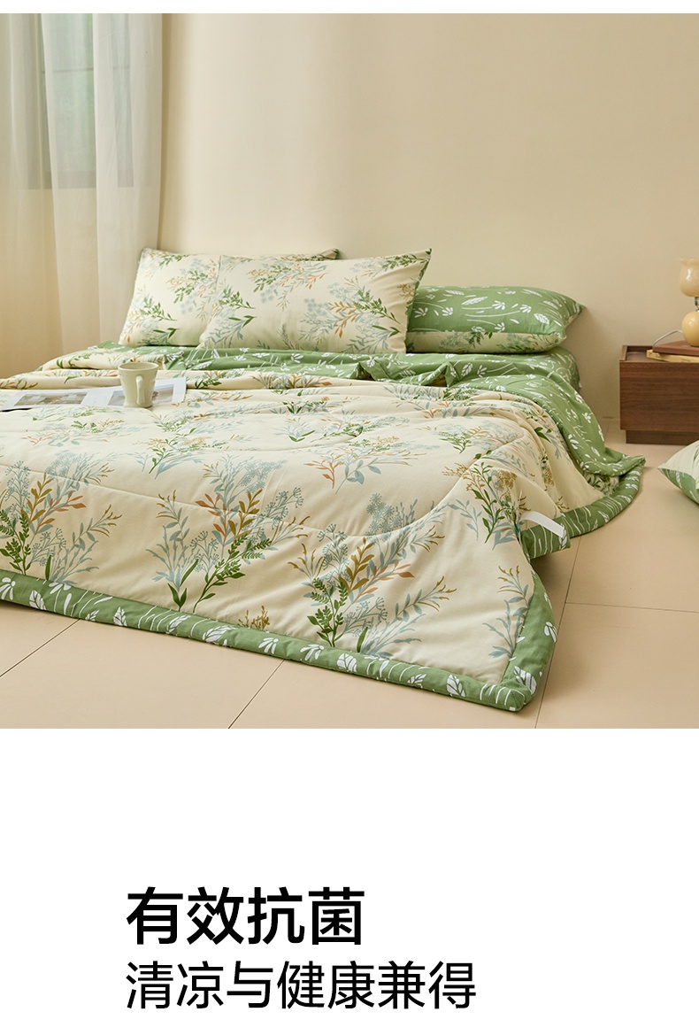 宝士康家纺 2025新款10A抗菌全棉夏被四件套(床笠款) 蝶舞杏运