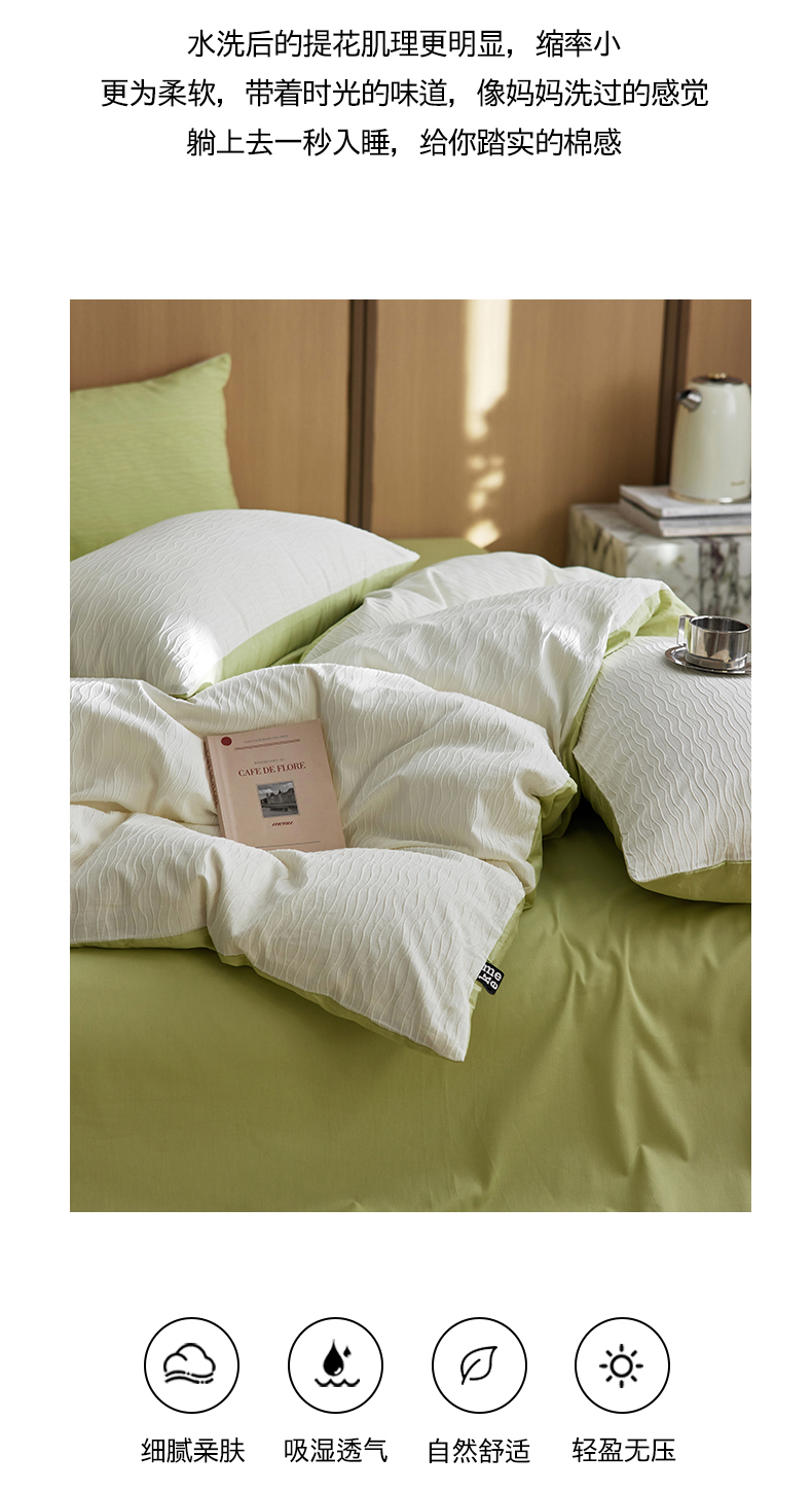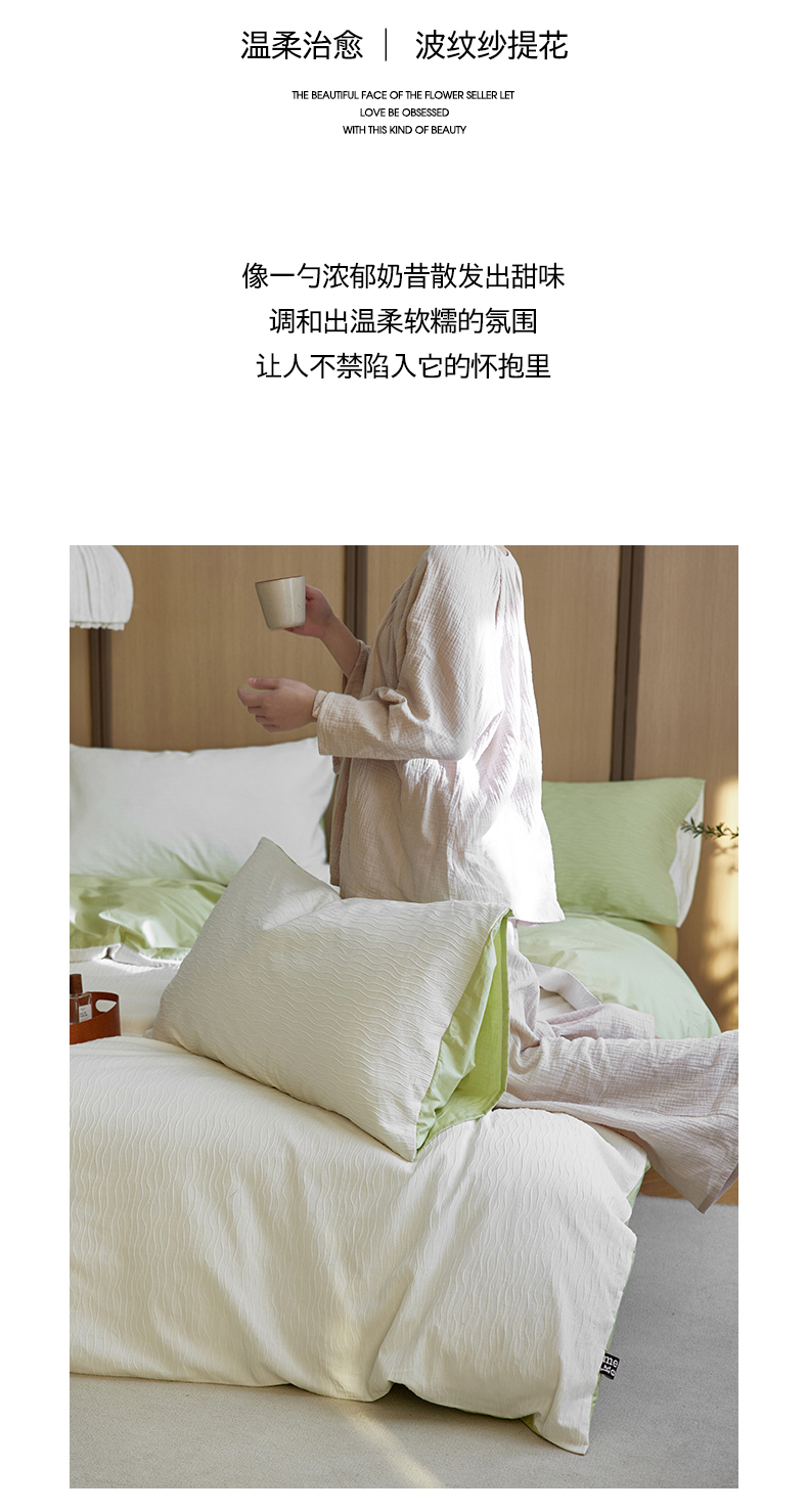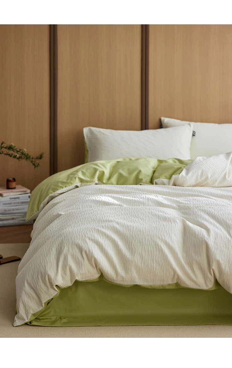 当前位置: 91家纺网 > 商品网购 > 床品套件 > 四件套 > 全棉普通四件套 > 风向标家纺 2025新款全棉波纹纱提花原木风四件套 波纹纱-雨竹白