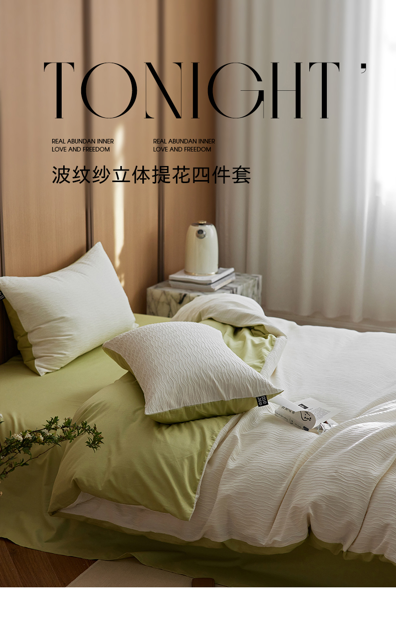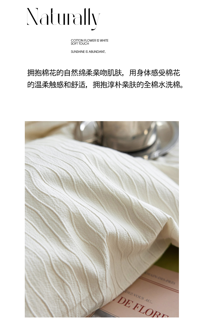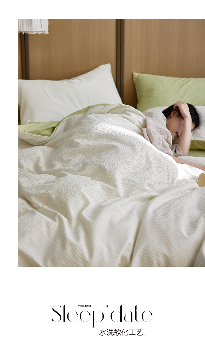 当前位置: 91家纺网 > 商品网购 > 床品套件 > 四件套 > 全棉普通四件套 > 风向标家纺 2025新款全棉波纹纱提花原木风四件套 波纹纱-雨竹白