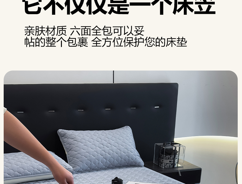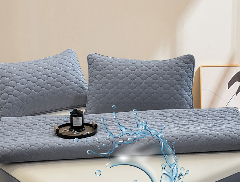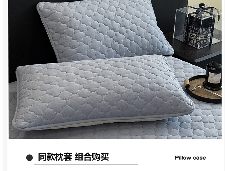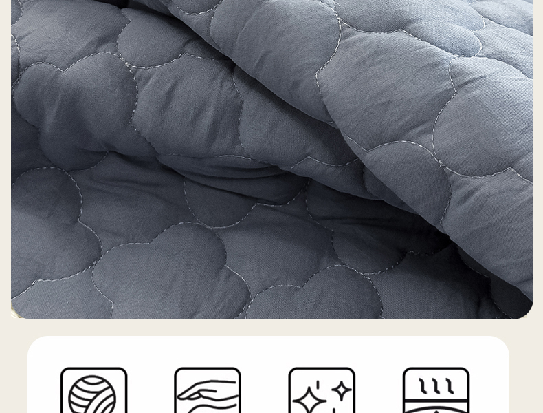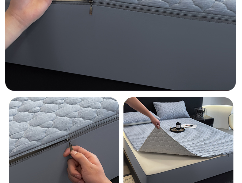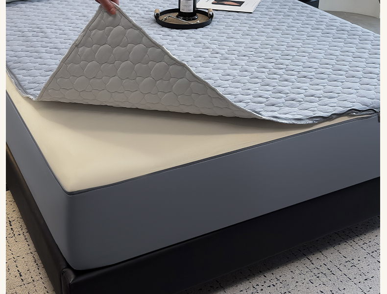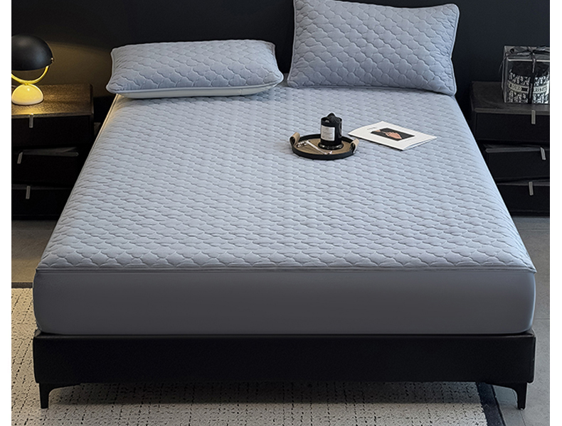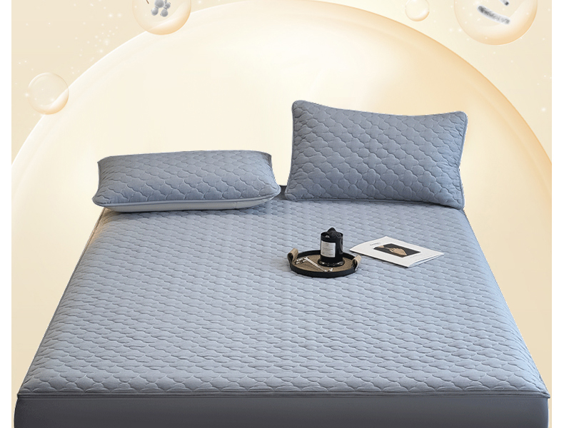 • 91家纺网 家纺一手货源 找家纺 叠派家纺 2025新款5A抗菌A类夹棉床笠经典款防水款系列 灰蓝-梅花经典款