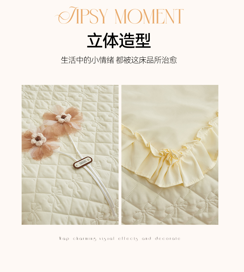 恒爱家纺 2025新款A类针织棉立体夏被夏凉被空调被-扶桑花 扶桑花-象牙白