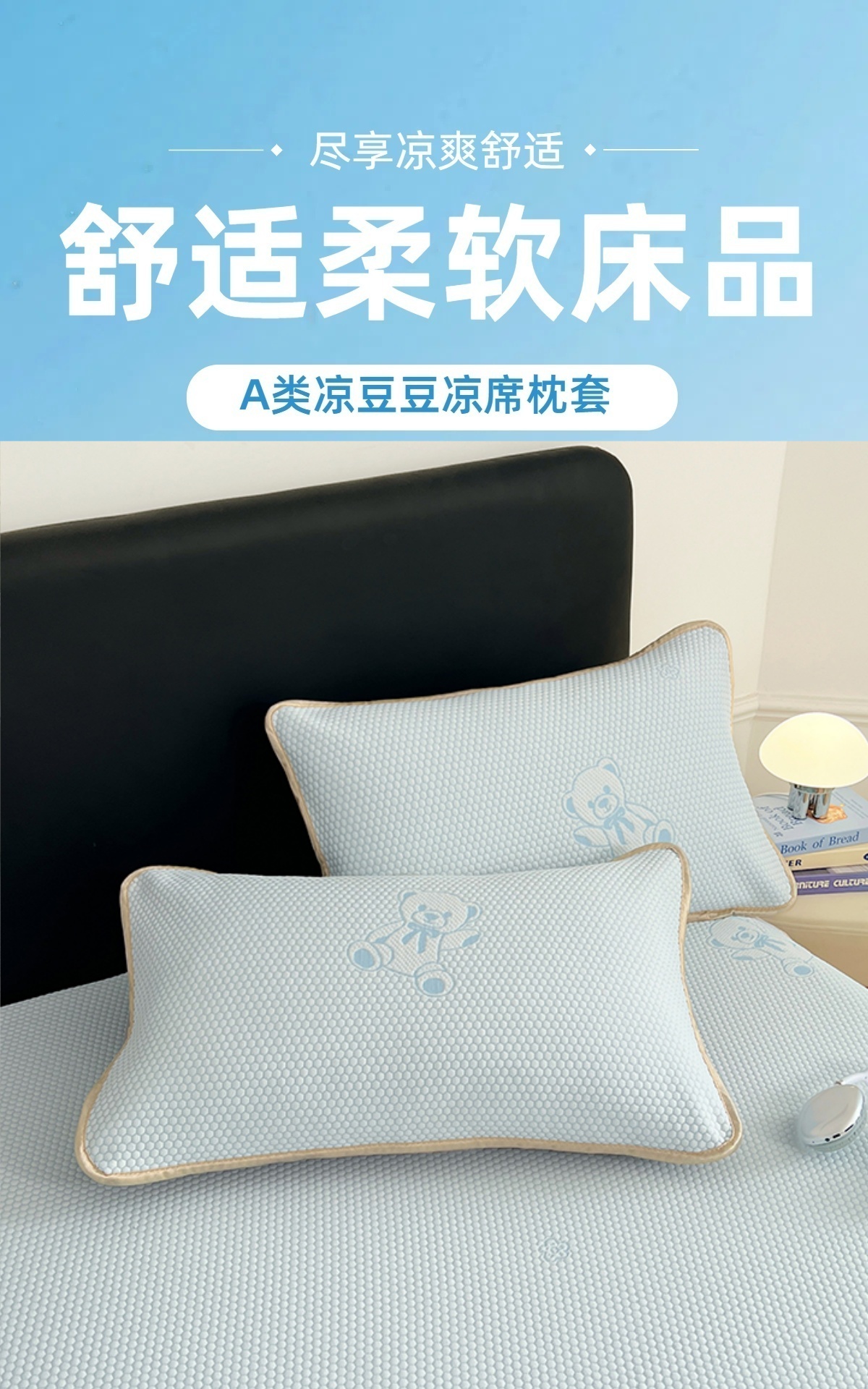商品名称:梦舒羽 2025新款凉感冰豆豆凉席枕套可水洗冰丝宿舍一只装枕头套一对枕芯套 冰豆豆-小熊蓝