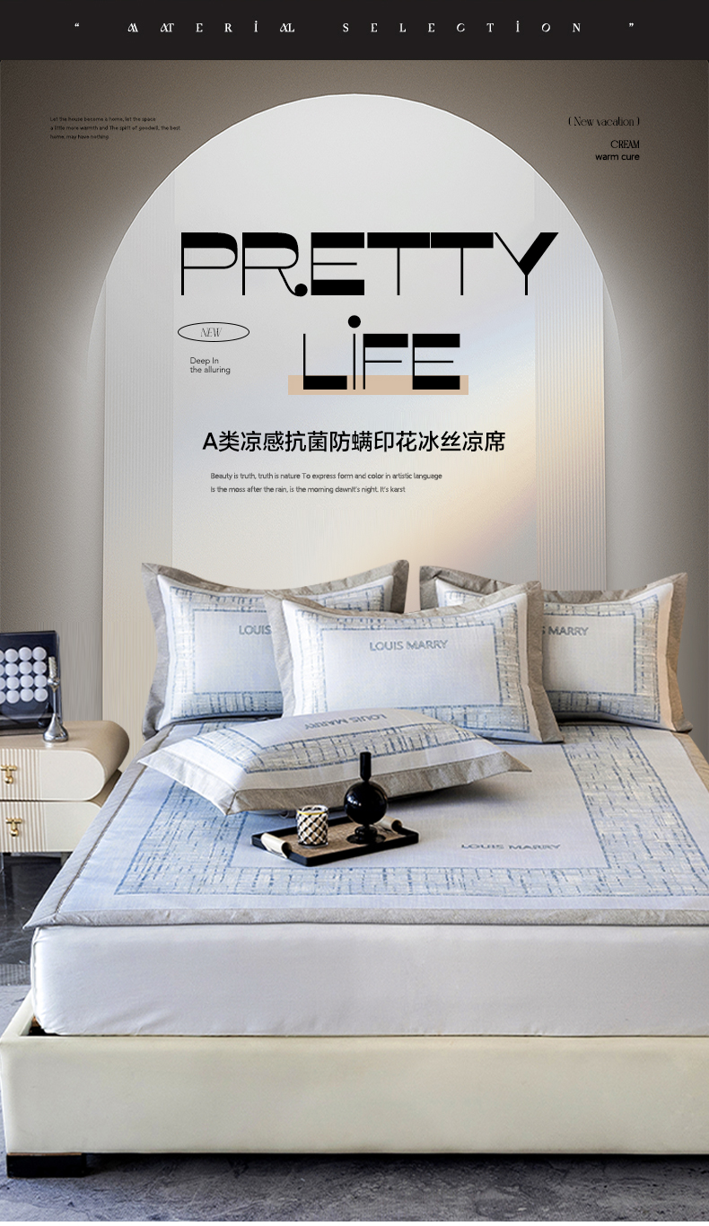 (总)三味舒屋 2025新款仲夏手札时尚印花冰藤凉席席子,仲夏手札米 床席,仲夏手札粉 床席,仲夏手札灰 床席,仲夏手札粉 床笠,仲夏手札灰 床笠,仲夏手札米 床笠