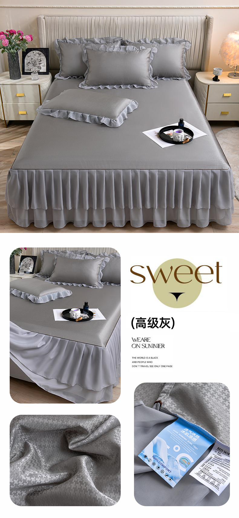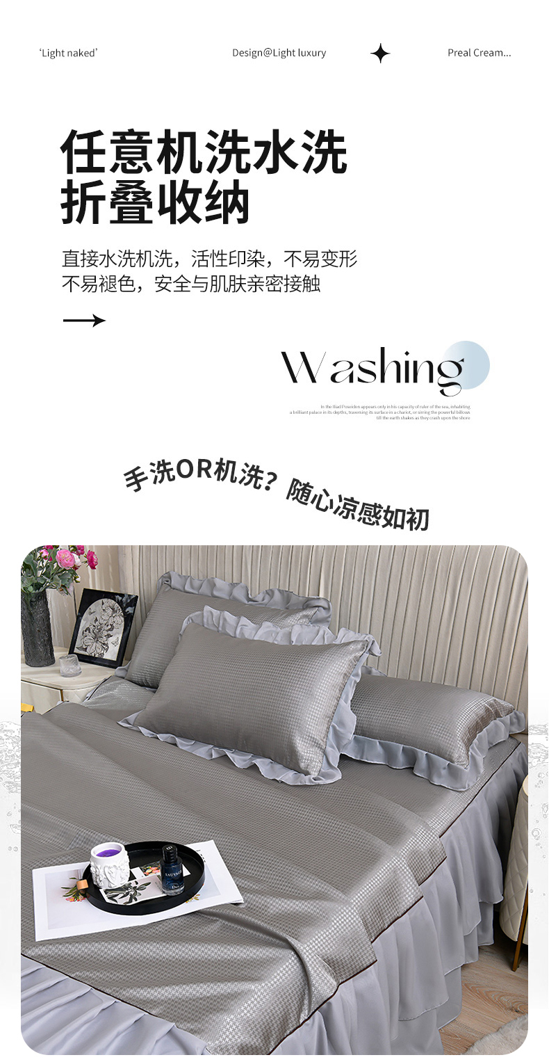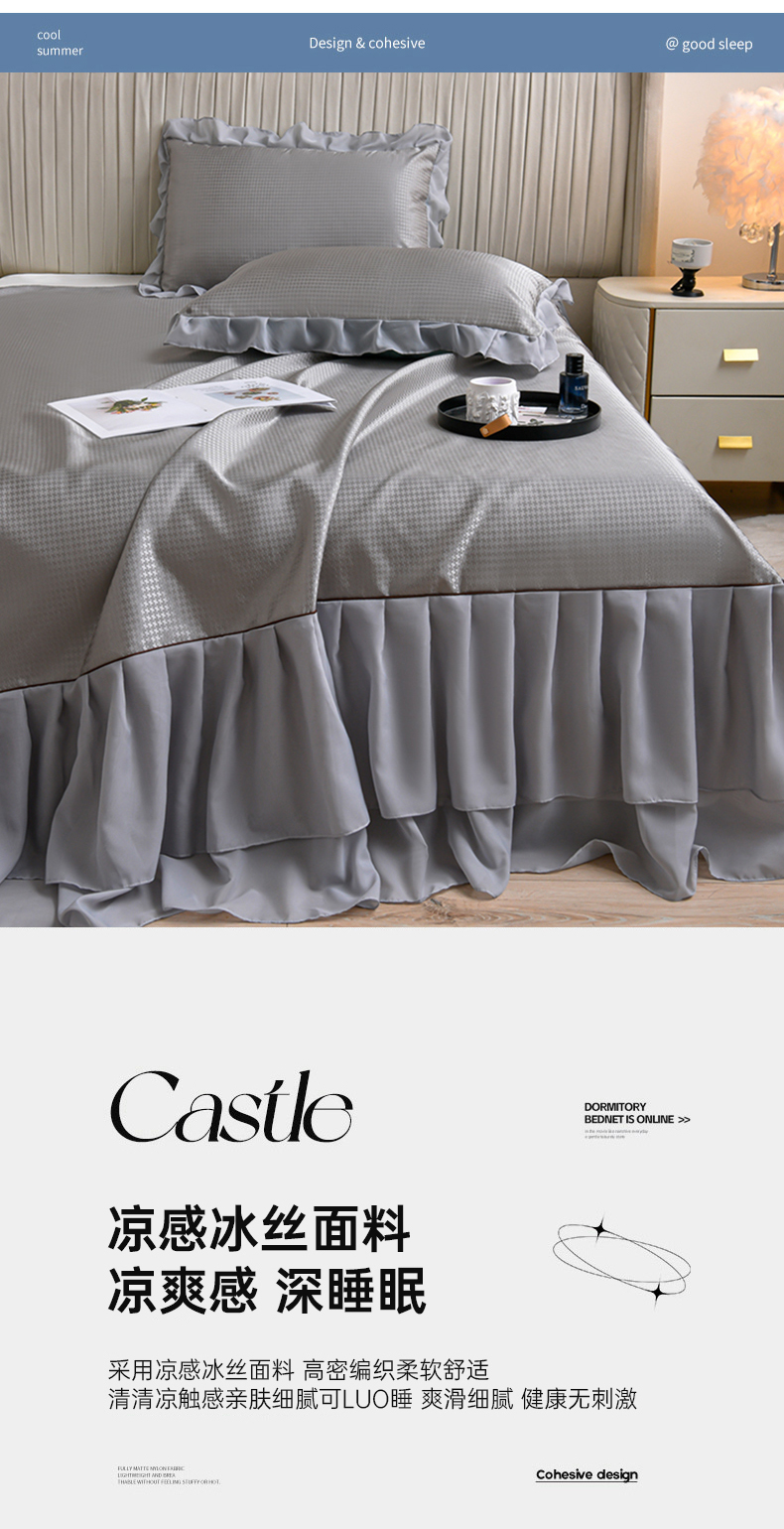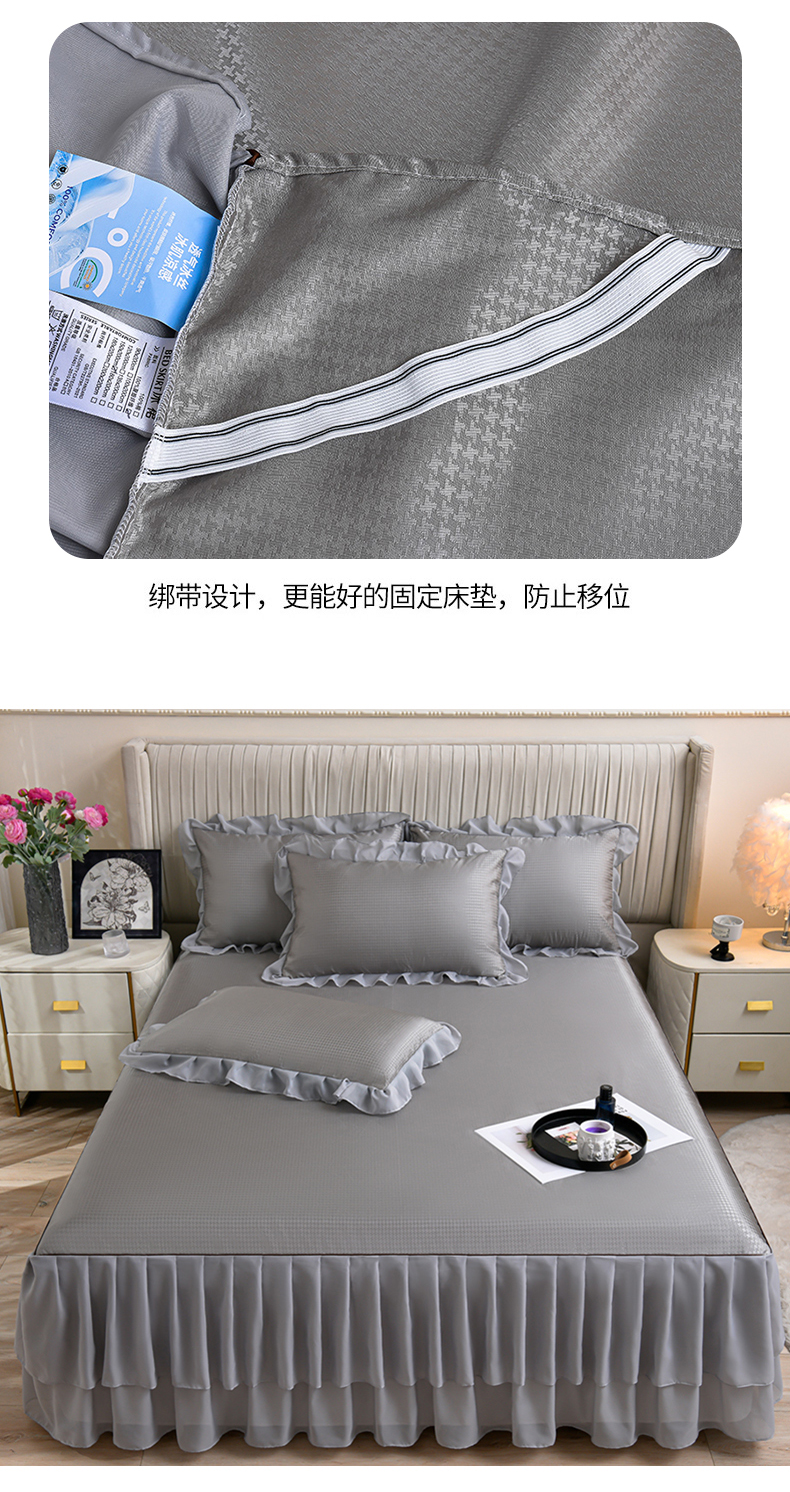 当前位置: 91家纺网 > 商品网购 > 床上用品 > 凉席 > 冰丝席 > 家之硕家纺 2025新款冰丝凉席床裙款三件套 高级灰