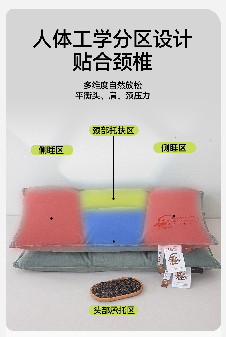 当前位置: 91家纺网 > 商品网购 > 枕头/枕芯/保健枕/颈椎枕 > 普通枕芯 > 麦肯锡 2025新款益眠分区纯荞麦枕枕头枕芯 松石绿46*72
