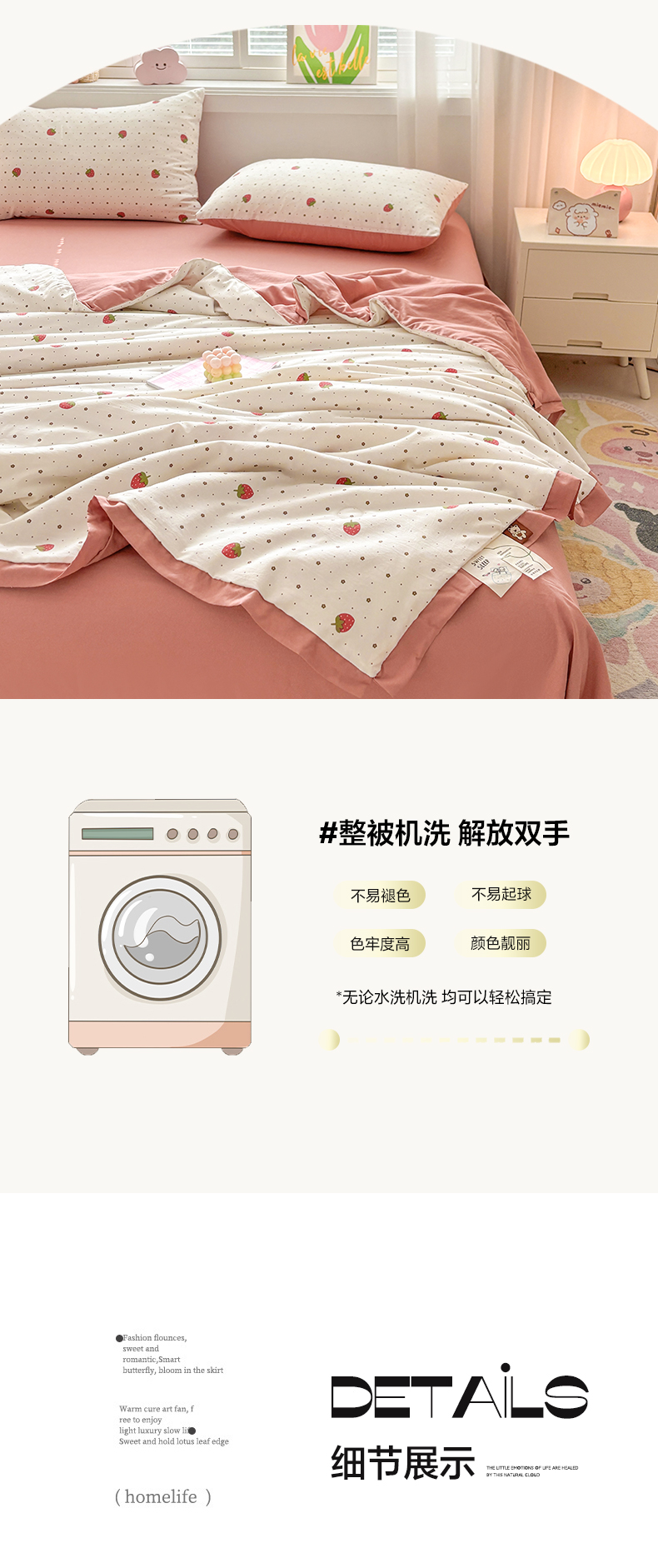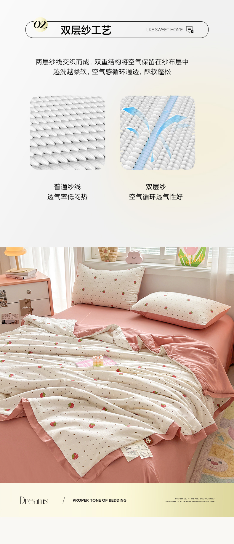 • 91家纺网 家纺一手货源 找家纺 典冠 2025新款有氧针织双层纱大豆夏被夏凉被空调被 草莓物语