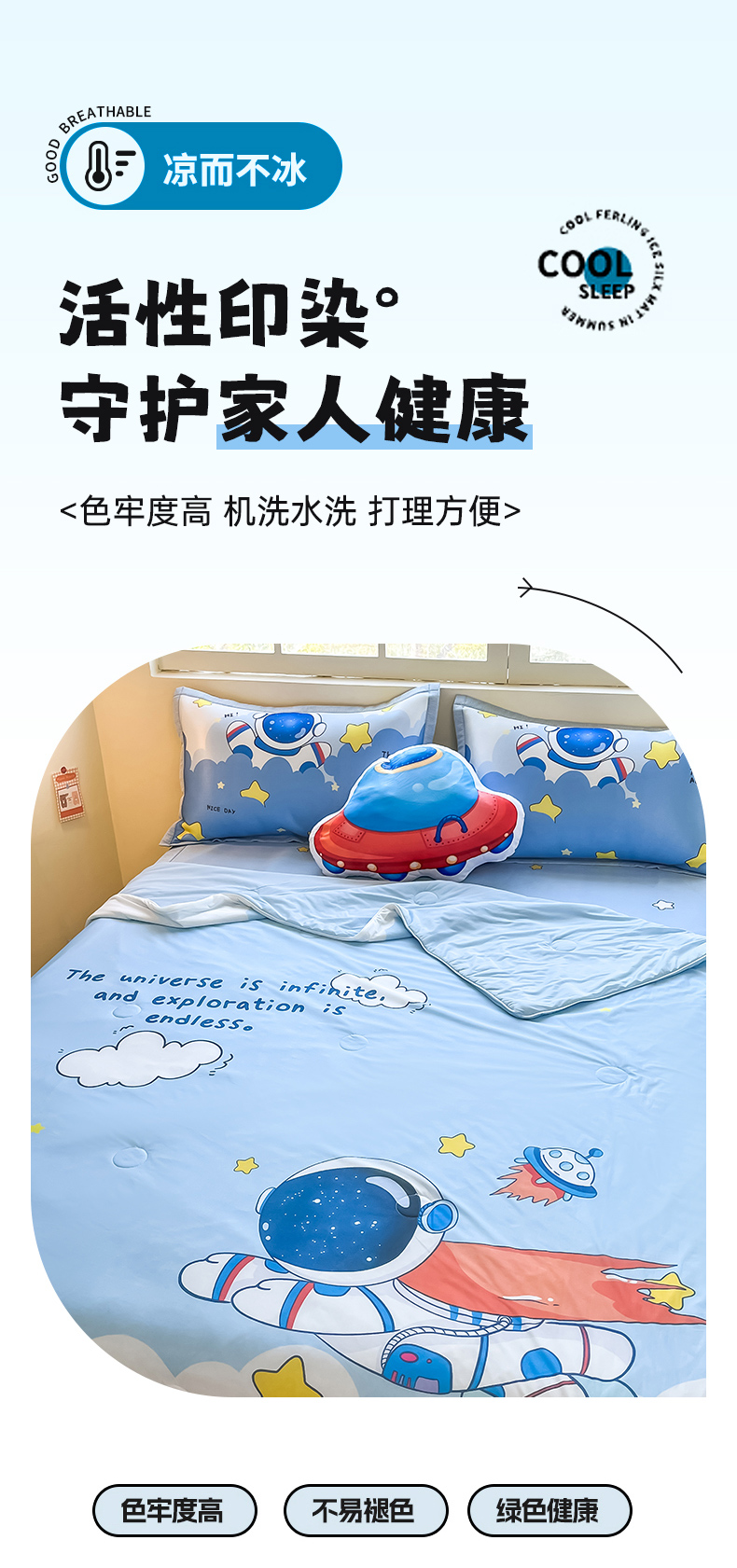 商品名称:(总)博雅 2025新款A类大版数码印花冰丝凉席可组合凉感丝夏被-宇航员