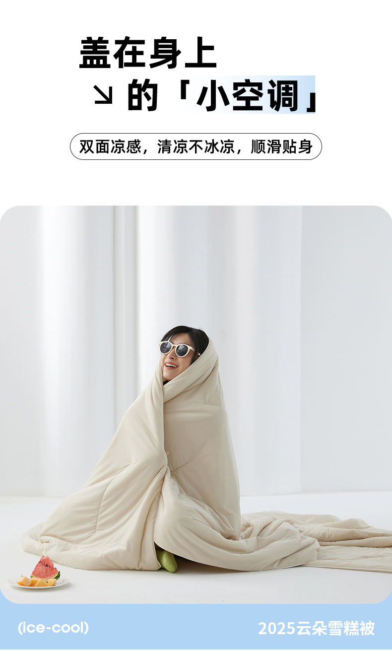 (总)亿梵家居2025春夏新款云朵雪糕凉感夏被夏凉被空调被,冰川蓝,奶茶米,胭脂粉