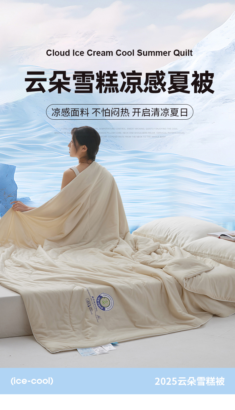 亿梵家居2025春夏新款云朵雪糕凉感夏被夏凉被空调被 奶茶米